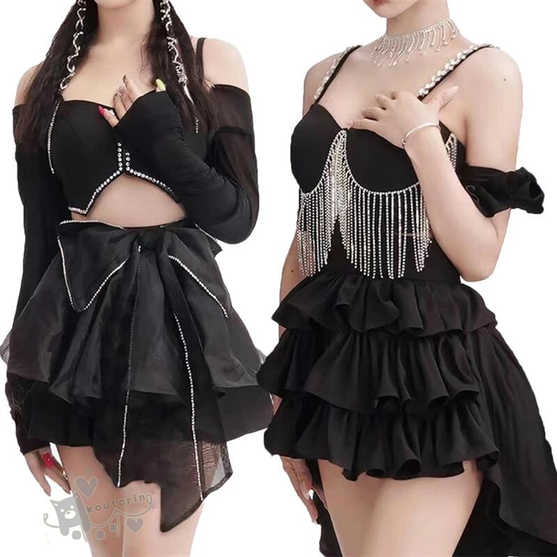 k-pop 衣装 黒 ダンス衣装 セットアップ 大人 レディース 韓国 アイドル 衣装 タンクトップ へそ出し 肩出し スカート ダンス衣装 K-POP レディース 応援団 高校生 チーム 練習着 ギャル服 チアガール ステージ衣装 ジャズダンス hiphop ヒップホップ 原宿系 送料無料
