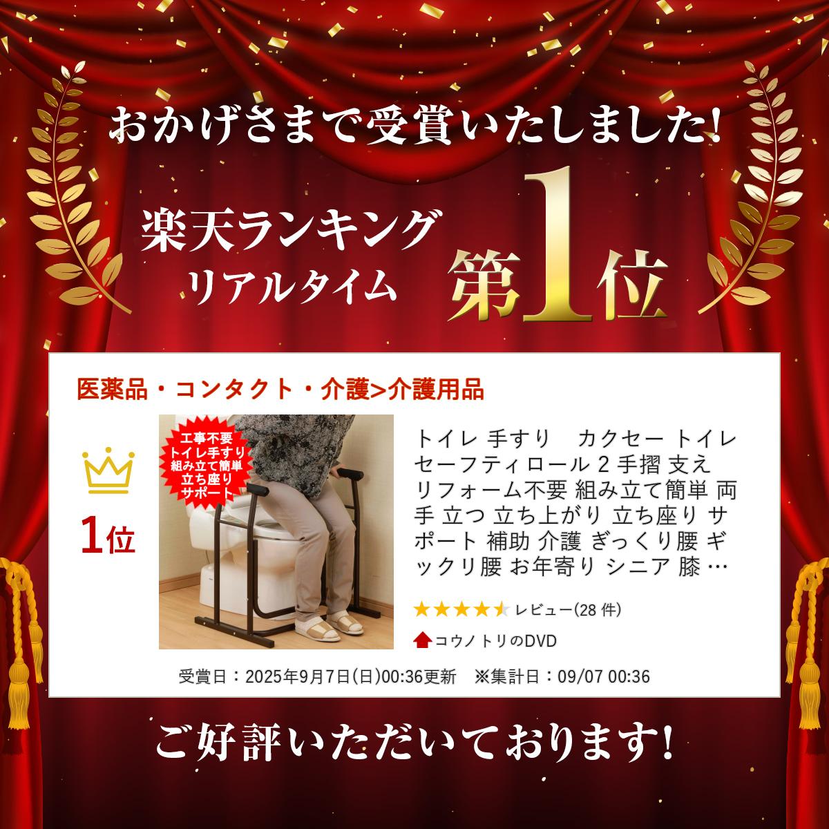 トイレ 手すり カクセー トイレセーフティロール 2 手摺 支え リフォーム不要 組み立て簡単 両手 立つ 立ち上がり 立ち座り サポート 補助 介護 ぎっくり腰 ギックリ腰 お年寄り シニア 膝 足腰 敬老 プレゼントト【送料無料(北海道、沖縄、離島は適用外】