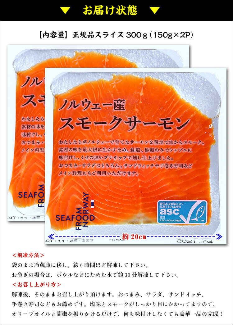 お試し送料無料2,999円!更に2個で600円OFF!3個で1,200円OFF!4個で2,000円OFF!5個で3,000円OFFクーポンあり! 【無添加&正規品】ごちそうスモークサーモン300g(150g×2P) 冷凍食品【受賞記念セール】【P】