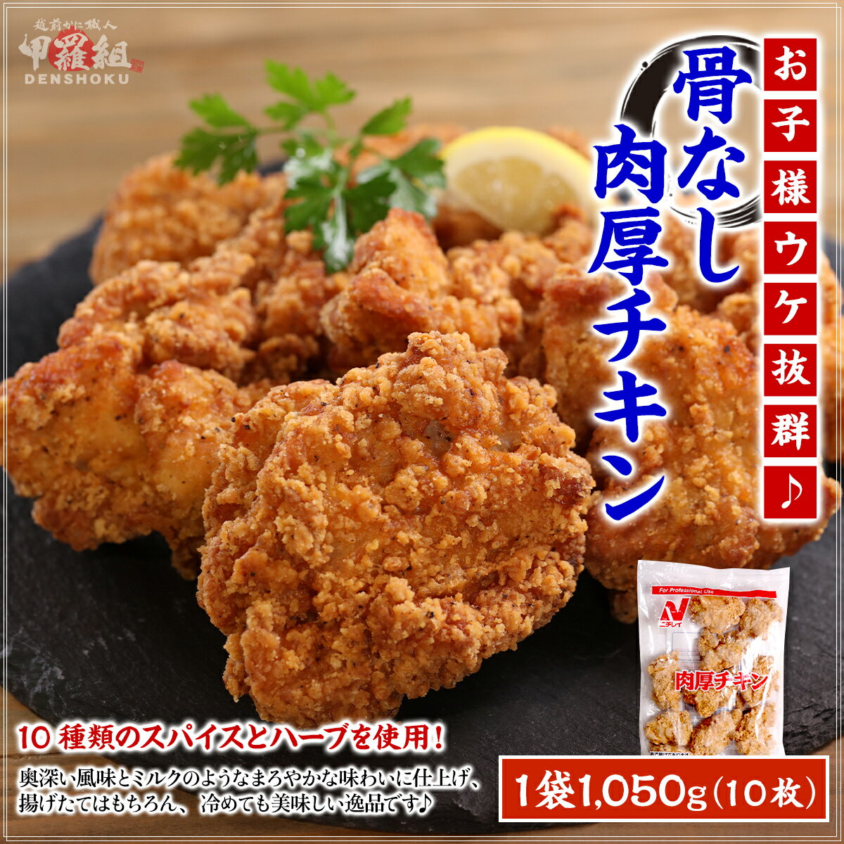 骨なし 肉厚 チキン 1,050g(10枚) 唐揚げ からあげ 冷凍 弁当 お惣菜 おかず 時短 子供 おやつ クリスマス ホットスナック パーティー オードブル やみつき フライドチキン 冷凍食品