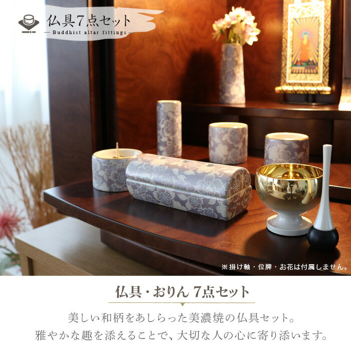 美濃焼 仏具セット 7点セット おりん付き 日本製 仏具 おりん セット りん棒 一式 ミニ おしゃれ 和風 和柄 陶器 国産 かわいい 小型仏壇 ミニ仏壇 高級感 小物セット 人気 おすすめ