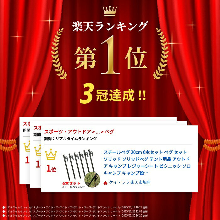 スチールペグ 20cm 6本セット ペグ セット ソリッド ソリッドペグ テント用品 アウトドア キャンプ レジャーシート ピクニック ソロキャンプ キャンプ設営用品 登山 テント タープ固定 BBQ ブラック 黒 タープテント y4