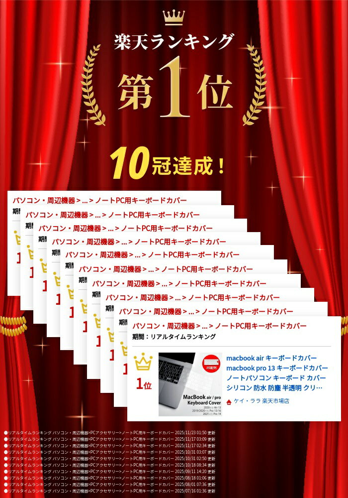 【MacBook専用の薄型キーボードカバー】 MacBookAirとMacBookProに対応したキーボードカバー。TPU製で厚みが約0.1mmと超薄型なので、透明度が高く、キーボードの文字がとても見やすいキーボードカバーです。 【MacBookにピッタリフィットするキーボードカバー】 MacBookに合わせて設計されているので、ピッタリフィットするキーボードカバー。タイピング中にズレたりしにくく、MacBookのデザインも損なわないキーボードカバーです。 【ほぼ透明のキーボードカバー】 高品質のTPU素材で出来ているので、透過度が高く、ほぼ透明なキーボードカバー。キーボタンに書かれている文字もハッキリとみることが出来るキーボードカバーです。 【防水・防塵・防汚のキーボードカバー】 どうしてもホコリや手垢で汚れがちなキーボード。キーボタンの隙間に粉塵が溜まってしまうと、故障の原因にもなります。でも、キーボードカバーを使うだけで、キーボードの汚れを防ぐことが出来て、お茶やコーヒーなどをこぼしても水がキーボードの中に入ることを防いでくれます。 【優れた弾力性のキーボードカバー】 優れた弾力性で、変形しにくいキーボードカバー。キーボードにピッタリで外れにくいキーボードカバーです。 【水洗いできるキーボードカバー】 汚れたりホコリが溜まってきたら水洗いできるので、いつも清潔にご利用頂けるキーボードカバーです。 ■タイプ:MacBookキーボードカバー ■カラー:半透明ホワイト ■厚さ:約0.1mm ■対応機種:MacBookAir13(A2179/A2337)、MacBookPro13/16(A2141/A2251/A2338/A2289)、MacBookPro14(A2442) ■素材:TPU ■重量:約15g 【発送とご注文について】MacBookキーボードカバーは、数量に限りがございますので、今スグのご注文がオススメです。 【商品のコンディション】新品でコンディションは良好です。※写真はできるだけ実物に近い色を表現できるよう努めておりますが、ご利用のPCやスマホなど表示機器の都合上、若干の差異が生じますことをあらかじめご了承ください。『MacBook専用の薄型キーボードカバー』:cas-430 MacBookAirとMacBookProに対応したキーボードカバー。TPU製で厚みが約0.1mmと超薄型なので、透明度が高く、キーボードの文字がとても見やすいキーボードカバーです。 ■MacBookにピッタリフィットするキーボードカバー MacBookに合わせて設計されているので、ピッタリフィットするキーボードカバー。タイピング中にズレたりしにくく、MacBookのデザインも損なわないキーボードカバーです。 ■ほぼ透明のキーボードカバー 高品質のTPU素材で出来ているので、透過度が高く、ほぼ透明なキーボードカバー。キーボタンに書かれている文字もハッキリとみることが出来るキーボードカバーです。 ■防水・防塵・防汚のキーボードカバー どうしてもホコリや手垢で汚れがちなキーボード。キーボタンの隙間に粉塵が溜まってしまうと、故障の原因にもなります。でも、キーボードカバーを使うだけで、キーボードの汚れを防ぐことが出来て、お茶やコーヒーなどをこぼしても水がキーボードの中に入ることを防いでくれます。 ■優れた弾力性のキーボードカバー 優れた弾力性で、変形しにくいキーボードカバー。キーボードにピッタリで外れにくいキーボードカバーです。 ■水洗いできるキーボードカバー 汚れたりホコリが溜まってきたら水洗いできるので、いつも清潔にご利用頂けるキーボードカバーです。 ご購入前にお読みください タイプ MacBookキーボードカバー カラー 半透明ホワイト 厚さ 約0.1mm 対応機種 MacBookAir13(A2179/A2337)、MacBookPro13/16(A2141/A2251/A2338/A2289)、MacBookPro14(A2442) 素材 TPU 重量 約15g 商品について 【MacBook専用の薄型キーボードカバー】 MacBookAirとMacBookProに対応したキーボードカバー。TPU製で厚みが約0.1mmと超薄型なので、透明度が高く、キーボードの文字がとても見やすいキーボードカバーです。 【MacBookにピッタリフィットするキーボードカバー】 MacBookに合わせて設計されているので、ピッタリフィットするキーボードカバー。タイピング中にズレたりしにくく、MacBookのデザインも損なわないキーボードカバーです。 【ほぼ透明のキーボードカバー】 高品質のTPU素材で出来ているので、透過度が高く、ほぼ透明なキーボードカバー。キーボタンに書かれている文字もハッキリとみることが出来るキーボードカバーです。 【防水・防塵・防汚のキーボードカバー】 どうしてもホコリや手垢で汚れがちなキーボード。キーボタンの隙間に粉塵が溜まってしまうと、故障の原因にもなります。でも、キーボードカバーを使うだけで、キーボードの汚れを防ぐことが出来て、お茶やコーヒーなどをこぼしても水がキーボードの中に入ることを防いでくれます。 【優れた弾力性のキーボードカバー】 優れた弾力性で、変形しにくいキーボードカバー。キーボードにピッタリで外れにくいキーボードカバーです。 【水洗いできるキーボードカバー】 汚れたりホコリが溜まってきたら水洗いできるので、いつも清