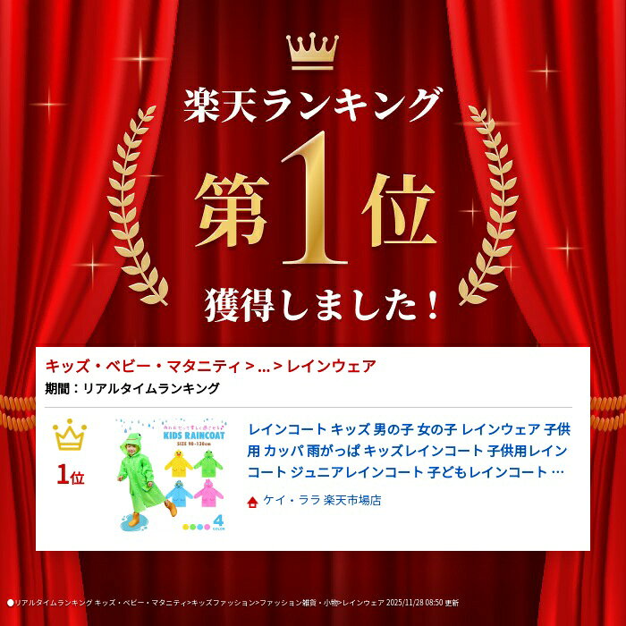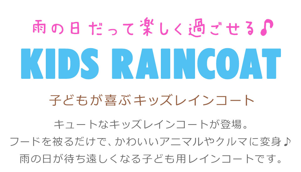 【子どもが喜ぶキッズレインコート】 キュートでかわいいキッズレインコート。フードを被るだけで、かわいいアニマルやクルマに変身できるキッズレインコートです。雨の日が待ち遠しくなる子供用レインコートです。 【色鮮やかな薄手素材のキッズレインコート】 薄くて軽いから動きやすいキッズレインコート。撥水性があり、雨の日でも目立つ鮮やかな色合いの生地を私用しているキッズレインコートです。 【前開きボタンタイプのキッズレインコート】 フロントはボタン式だから、お子さまだけでも脱ぎ着がしやすいキッズレインコートです。 【キュートなデザインのキッズレインコート】 フードを被るだけで、かわいいアニマルや車に変身。雨の日が待ち遠しくなるキッズレインコートです。 【ドローコード付きのキッズレインコート】 フードは首元のドローコードで調節できるので、雨風が強い時も安心のキッズレインコートです。 【フラップポケット】 フロントの両サイドには、大切なおもちゃなどが入れられるフラップポケット付き。 【袖口はゴム仕様】 両袖口は雨が入りにくいゴム仕様。手首にフィットして動きやすい。 ■タイプ:キッズレインコート ■カラー:イエロー、グリーン、ブルー、ピンク ■サイズ:着丈/約65cm、身幅/約50cm、袖丈/約55cm ■素材:ポリエステル100% ■重量:約100g 【ご注意】 ※豪雨や台風、激しい水仕事からはガードしきれない場合がございます。 ※フードは視界を遮ることがありますので、注意してご使用ください。 ※ご使用後は水気を十分に取り、風通しの良い場所で完全に乾かしてください。 ※タンブラー乾燥はお控えください。 ※湿気の多い場所での保管はお避け下さい。 ※汚れた場合は固く絞ったタオルで水拭きをしてください。変質、変色の恐れがありますので、シンナー、アルコールなどで拭かないでください。 ※火気に近づけないでください。 ※本来の使用目的以外で使用しないでください。 ※商品によって個体差がありますので、サイズ表記に誤差がでることがございます。また、測定方法によっても誤差が生じますので、予めご了承ください。 【発送とご注文について】キッズレインコートは、数量に限りがございますので、今スグのご注文がオススメです。 【商品のコンディション】新品でコンディションは良好です。※写真はできるだけ実物に近い色を表現できるよう努めておりますが、ご利用のPCやスマホなど表示機器の都合上、若干の差異が生じますことをあらかじめご了承ください。『子どもが喜ぶキッズレインコート』:zak-090 キュートでかわいいキッズレインコート。フードを被るだけで、かわいいアニマルやクルマに変身できるキッズレインコートです。雨の日が待ち遠しくなる子供用レインコートです。 ご購入前にお読みください タイプ キッズレインコート カラー イエロー、グリーン、ブルー、ピンク サイズ 着丈/約65cm、身幅/約50cm、袖丈/約55cm 素材 ポリエステル100% 重量 約100g 商品について 【子どもが喜ぶキッズレインコート】 キュートでかわいいキッズレインコート。フードを被るだけで、かわいいアニマルやクルマに変身できるキッズレインコートです。雨の日が待ち遠しくなる子供用レインコートです。 【色鮮やかな薄手素材のキッズレインコート】 薄くて軽いから動きやすいキッズレインコート。撥水性があり、雨の日でも目立つ鮮やかな色合いの生地を私用しているキッズレインコートです。 【前開きボタンタイプのキッズレインコート】 フロントはボタン式だから、お子さまだけでも脱ぎ着がしやすいキッズレインコートです。 【キュートなデザインのキッズレインコート】 フードを被るだけで、かわいいアニマルや車に変身。雨の日が待ち遠しくなるキッズレインコートです。 【ドローコード付きのキッズレインコート】 フードは首元のドローコードで調節できるので、雨風が強い時も安心のキッズレインコートです。 【フラップポケット】 フロントの両サイドには、大切なおもちゃなどが入れられるフラップポケット付き。 【袖口はゴム仕様】 両袖口は雨が入りにくいゴム仕様。手首にフィットして動きやすい。 注意点 ※写真はできるだけ実物に近い色を表現できるよう努めておりますが、ご利用のPCやスマホなど表示機器の都合上、若干の差異が生じますことをあらかじめご了承ください。 ※入荷時期により製品のデザインや仕様などが予告なく変更される場合がございますので、予めご了承ください。 ※豪雨や台風、激しい水仕事からはガードしきれない場合がございます。 ※フードは視界を遮ることがありますので、注意してご使用ください。 ※ご使用後は水気を十分に取り、風通しの良い場所で完全に乾かしてください。 ※タンブラー乾燥はお控えください。 ※湿気の多い場所での保管はお避け下さい。 ※汚れた場合は固く絞ったタオルで水拭きをしてください。変質、変色の恐れがありますので、