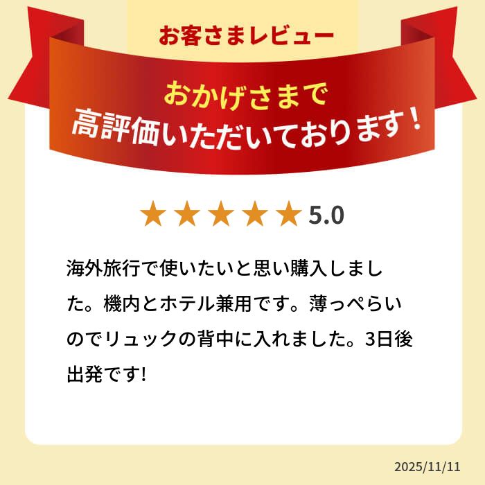 【旅行やアウトドアに最適。軽量で快適な履き心地の万能折りたたみサンダル】 旅先やアウトドア、スポーツジム、温泉、ビーチなど、外出先でのちょっとした履き替えに最適な折りたたみ式サンダルです。コンパクトに折りたためる設計で、バッグやスーツケースにすっきり収まり、携帯にも便利。急な宿泊やレジャーシーンでもサッと取り出してすぐに使える優れものサンダルです。 【EVA素材を使用した軽量&ソフトな履き心地】 柔らかく弾力性のあるEVA(エチレン酢酸ビニル)素材を使用しているサンダル。非常に軽量で、まるで履いていないかのような軽快な足取りを実現。また、足裏へのフィット感が高く、長時間歩いても疲れにくく、足に負担をかけません。柔らかさと反発力を兼ね備えた素材なので、素足で履いても快適に過ごせるサンダルです。 【長時間履いても変形しにくい】 サンダルは毎日使うものだからこそ、耐久性と変形しにくさにもこだわりました。EVA素材は型崩れしにくく、繰り返しの折りたたみにも強い構造。旅行や屋外での使用だけでなく、日常の室内履きスリッパとしても長くご愛用いただけます。 【フラットに収納できるから持ち運びラクラク】 柔らかくしなやかな素材とシンプルな構造により、折りたたむだけでフラットな状態に収納可能な折りたたみサンダル。かさばりがちな靴類の中でも、驚くほど省スペースで持ち運ぶことができます。旅行用のスーツケースやバックパックの隙間、ジムバッグのポケットなどにサッと入れられて、場所を取らずスマートに収納できるのが魅力。外出先での履き替え用や、急な宿泊時の携帯スリッパとしても大活躍します。薄くコンパクトでも、履き心地はしっかり快適。軽さ・収納性・実用性を兼ね備えた便利な携帯用サンダルです。 【柔らかくてしなやか。グニャッと半分に折りたためる柔軟性】 芯までやわらかく設計されているため、手で簡単にグニャッと半分に折りたたむことができます。サンダル全体に柔軟性があり、折り曲げても形状を損ないにくいです。カバンの隙間や旅行ポーチにも無理なく収まり、収納場所に困らないのはもちろん、折りたたんだ状態でもサンダルが型崩れしにくいので、長くきれいな状態でお使いいただけます。 【一体成形構造で高い耐久性を実現】 このサンダルは、パーツを接着するのではなく、一体成形(モノコック構造)で仕上げられているため、非常に耐久性に優れているのが特徴です。一体型のデザインはシンプルで見た目にも美しく、汚れがたまりにくいため、お手入れも簡単。濡れても乾きやすく、アウトドアや水まわりのシーンでもご使用いただけます。さらに、素材全体がやわらかく、折りたたみもスムーズ。柔軟性と強度のバランスに優れた、実用性の高いサンダルです。 【耐久性・滑り止め性能も抜群】 アウトソールには、耐摩耗性に優れた滑り止めソールを採用しており、濡れた床や滑りやすい場所でも安心のサンダル。シャワー室やプールサイド、キャンプ場の水回りでも滑りにくく、安全性を高めています。底面のグリップ力がしっかりしているので、安定した歩行をサポートしてくれるサンダルです。 【使用シーンはさまざま。1足あると便利な多機能サンダル】 ◎旅行・出張の携帯用スリッパに ◎アウトドアやキャンプのリラックスサンダルに ◎温泉・銭湯・プールでのシャワーサンダルとして ◎ビーチや海水浴でのビーチサンダルに ◎ジム・ヨガ・スポーツ施設の着替え用として ◎自宅やオフィスでの室内履きスリッパに ■タイプ:折りたたみサンダル ■カラー:ブラック、ホワイト、ピンク ■サイズ:22.5〜23.0cm(35/36)、23.5〜24.0cm(37/38)、24.5〜25.0cm(39/40)、25.5〜26.0cm(41/42)、26.5〜27.0cm(43/44)、27.5〜28.0cm(45/46) ■素材:EVA 【発送とご注文について】折りたたみサンダルは数量に限りがございますので、今スグのご注文がオススメです。 【商品のコンディション】新品でコンディションは良好です。※写真はできるだけ実物に近い色を表現できるよう努めておりますが、ご利用のPCやスマホなど表示機器の都合上、若干の差異が生じますことをあらかじめご了承ください。『旅行やアウトドアに最適。軽量で快適な履き心地の万能折りたたみサンダル』:fas-102 旅先やアウトドア、スポーツジム、温泉、ビーチなど、外出先でのちょっとした履き替えに最適な折りたたみ式サンダルです。コンパクトに折りたためる設計で、バッグやスーツケースにすっきり収まり、携帯にも便利。急な宿泊やレジャーシーンでもサッと取り出してすぐに使える優れものサンダルです。 ■EVA素材を使用した軽量&ソフトな履き心地 柔らかく弾力性のあるEVA(エチレン酢酸ビニル)素材を使用しているサンダル。非常に軽量で、まるで履いていないかのような軽快な足取りを実現。また、足裏へのフィット感が高く、長時間歩いても疲れにくく、足に負担をかけません。柔らかさと反発力を兼ね備えた素材なので、