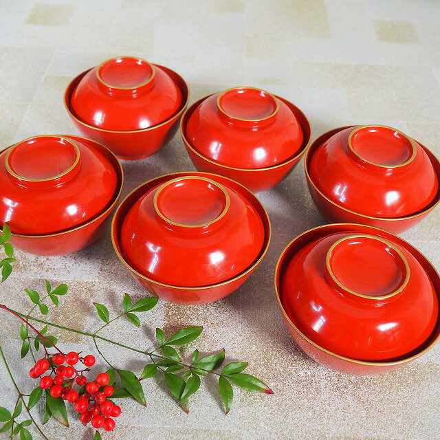 皆朱汁椀 6個組 0005漆器 天然木 漆会席 お椀 食器【中古】 古美術 骨董 アンティークJAPAN antique vintage tableware japanese lacquerware japanese soup bowl