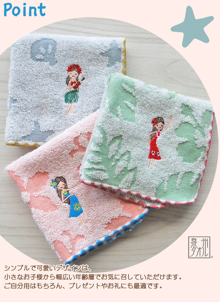 【Shinzi Katoh】『フリフリ』タオルハンカチ 約23×23cm 甘撚り ジャガード フラガール 発表会 フラ雑貨 刺繍 タオルチーフ シンジカトウ カトウシンジ 日本製 国産 泉州タオル プレゼント 人気 ギフト かわいい 【クーポン配布中】