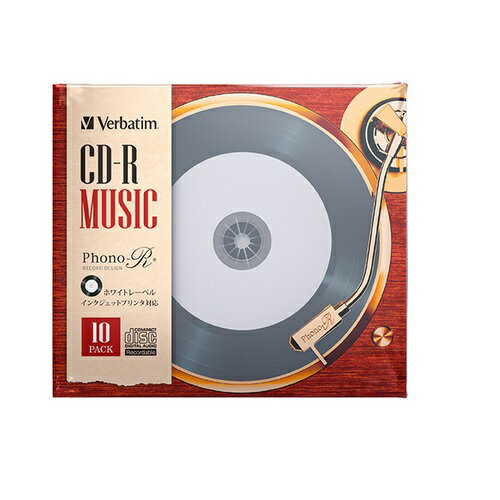 ・インクジェットプリンタ対応・レコードデザイン・10mmプラケース仕様※画像はイメージですインクジェットプリンタ対応音楽用CDアナログレコードをモチーフにしたバーベイタムのオリジナルデザインのCD-Rです。対応のインクジェットプリンタでレーベル印刷可能。(※)Phono-Rとインクジェットプリンタでレコード調オリジナルデザインが簡単に作れます。メーカー独自開発のAZO色素採用により、優れた耐久性を実現しました。※一部のプリンターでは印刷できない場合があります。■開封後のご返品はお受けできません。対応機種をお確かめの上ご注文ください。こちらの商品は「ひと家族様3点限り」となります。同一お届け先、同一名義による4点以上のご注文、または当店が転売目的と判断した場合、ご注文を取消しさせていただく場合がございます。●記録回数:1回のみ●容量/録音時間:700MB/79.57分●記録速度:24倍速 ※データ用CD-Rとして使用する場合は48倍速でお使いいただけます。●レーベル対応:インクジェットプリンタ対応●印刷範囲:25mm-70mm●レーベル仕様:インクジェット●レーベル色:ホワイト●ブランド仕様表記(レーベル面):ブランド仕様表記なし●入り数:10枚●インデックスカード:あり●ケース(仕様):10mmプラケース●ケース(色):透明(黒Trey)●梱包仕様:カラーフィルム●RoHS指令:適合●グリーン購入法基準:非適合●本体サイズ(mm):120(φ)x1.2(H)●本体重量(g):15.2(g)