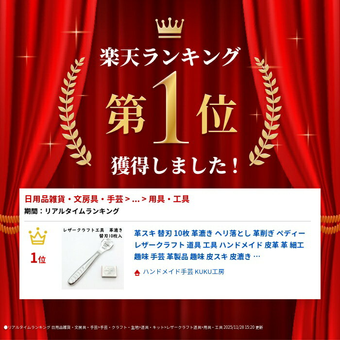 レザークラフト向けの革漉きです。 ■ご注意点 ・製造ロットにより、若干のサイズ違い・色味の違いなどがある場合がございます。 ・商品の特性上、小傷などがある場合がございますのでご了承ください。 ・できる限り見た目に近い写真になるように配慮しておりますが、パソコン、スマホなどによって色味が異なって見える場合がございます。