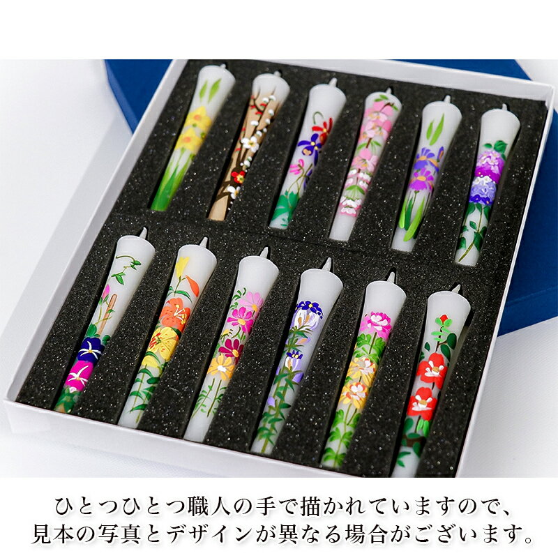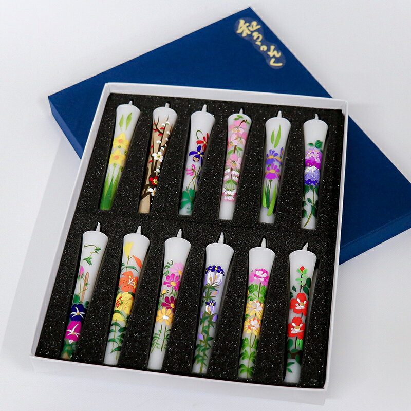 和ろうそく 「手描き絵ろうそく 四季の花 12本セット 3号」 ローソク 朱 開眼供養