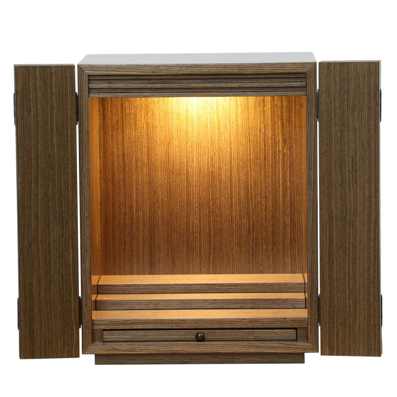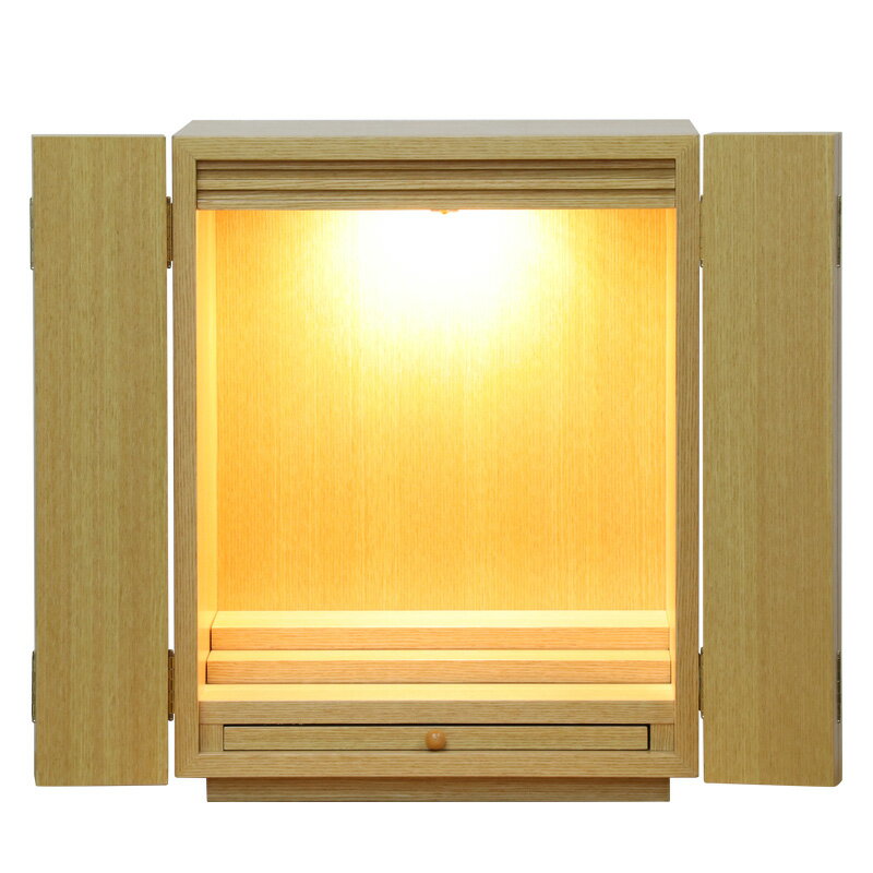 ミニ仏壇 「デイジー15号」LEDライト付き 仏具セット ウォールナット・ライト 仏壇 モダン仏壇 モダン ミニ 仏壇ミニ キューブ ナチュラル ブラウン