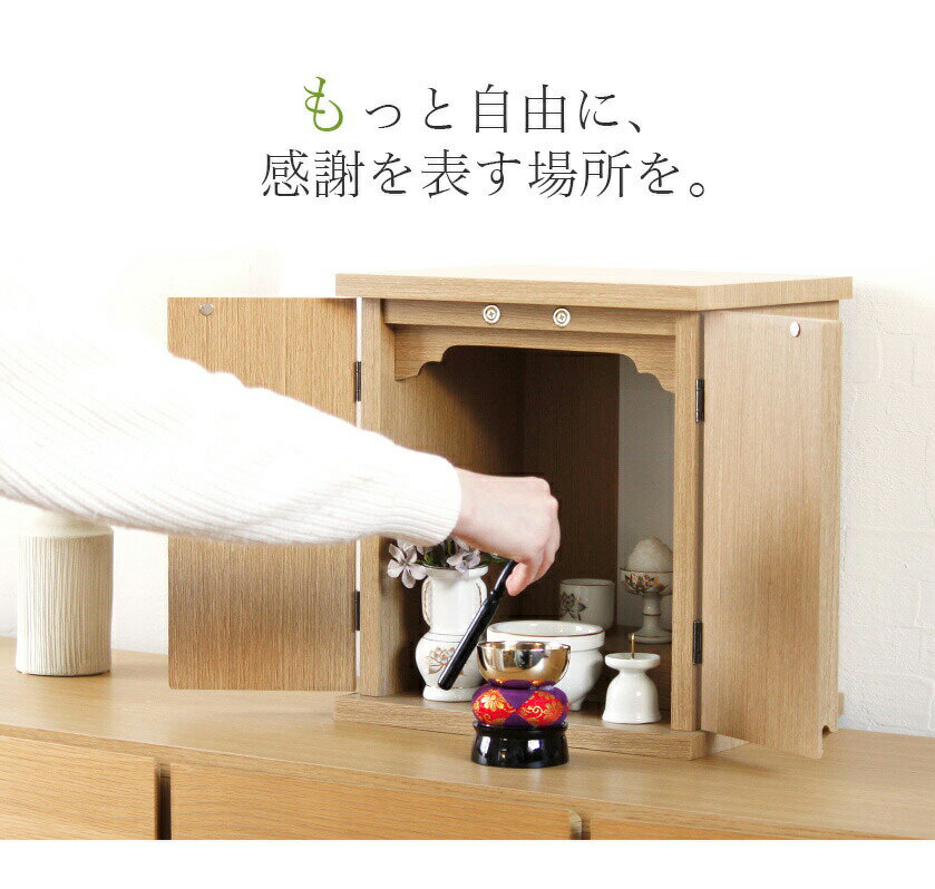 よく一緒に購入されている商品仏花 造花選べる10色 高さ約18〜25cm 1,630円~掛け軸 オリジナル掛軸 20代 阿弥陀如1,980円仏壇台 おしゃれ 仏壇下台 仏壇置台 ウォ19,800円類似商品はこちら仏壇 ミニ仏壇 スペース ナチュラル ウォー7,980円ミニ仏壇 LEDライト付き 仏具セット ウォ26,800円~仏壇 クルミタモ 14号 仏壇仏具セット ミニ36,800円~仏壇仏具セット仏具付き 高さ43cm 3色 家46,800円ミニ仏壇 LEDライト付き 仏具セット ウォー42,800円~ミニ仏壇セット 扉なしのモダンミニ仏壇 31,800円ミニ仏壇 オープン仏壇 仏具セット おしゃ22,800円~ミニ仏壇 仏具セット LEDライト ウォールナ22,800円~ミニ仏壇セット 扉なしのモダンミニ仏壇 28,800円新着商品はこちら2025/11/5ペット用仏具 おりん 手元供養 テイロ 15,400円2025/10/28お位牌入れ さくら柄 桜 白木位牌 携帯用5,980円2025/10/23女性用高級念珠・数珠 本水晶 藤雲石仕立 銀花8,590円再販商品はこちら2025/11/26国産神棚 檜 屋根違い 三社・中No1003 24,800円2025/11/25遠山三宝 4寸 神棚 神具 鏡餅 御供 祭壇1,680円2025/11/23遠山三宝 7寸 神棚 神具 鏡餅 御供 祭壇2,950円2025/11/27 更新 ▼オプションで仏具を追加できます▼ サイズ 外寸:幅33cm×奥行26cm×高さ36cm 内寸(棚なし):幅27cm×奥行21.5cm×高さ28cm 棚サイズ:幅27cm×奥行14cm×高さ4cm 材質 ウォールナット色プリント/ナチュラル色プリント/ホワイト色プリント 主材:MDF(集成材) 仏具セット内容 火立て×1、仏器×1、茶器×1、花立て×1、香炉×1、香炉灰×1、おりんセット 生産国 国内外 専門工場 重量 6.5kg 位牌 おすすめサイズ:総高さ16〜17cm前後 仕様 棚板は取り外し可能 マグネット部分を2024年3月にリニューアルしました 注意点 ・お求めやすい価格を実現するために、製品の仕上がりにバラつきがございます。 通常の使用には問題ありませんが、表面材の剥がれや小傷がございます。 予めご了承ください。 ・ディスプレイ等の条件により、画面上と実物では多少色味が異なる場合がございます。