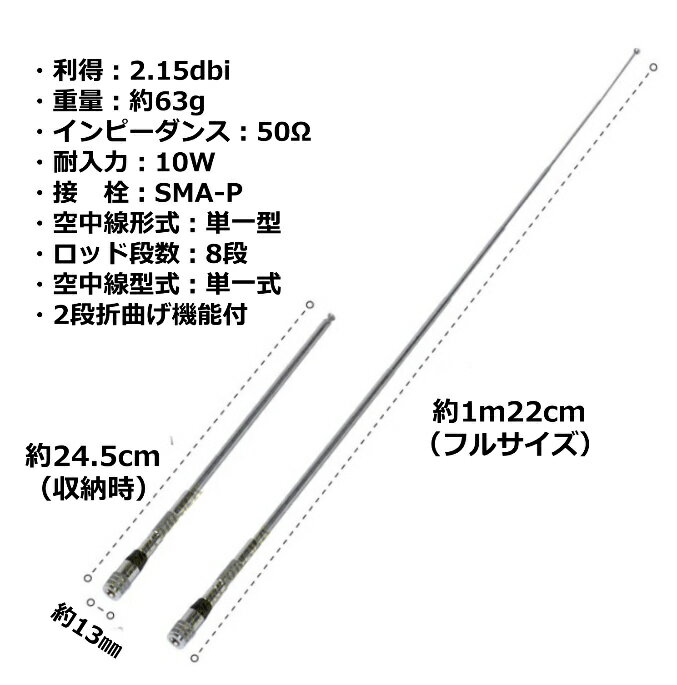 2m アマチュア無線 136MHz〜174MHz対応 ハンディ用 2段折り曲げロッドアンテナ 新品 即納