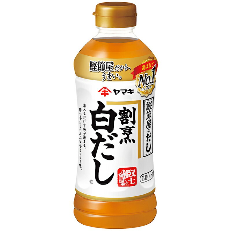 【ヤマキ】\鰹節屋のだし/割烹 白だし 500ml×12本(12本×1箱) ●薄めるだけで味が決まる、鰹一番だしの上品な香りとうま味。 ~「白だし」とは?~ 白だしとは、一般的にかつお節や昆布などからとった“だし”に白醤油や淡口醬油、砂糖、みりんなどを加えて作った万能調味料です。 「ヤマキ割烹白だし」は素材の色そのままにかつお節の豊潤な香りとかつおだしのうま味を加えることができます。 これ一本で味が決まり、和洋中問わず幅広いシーンでご活用していただけます。