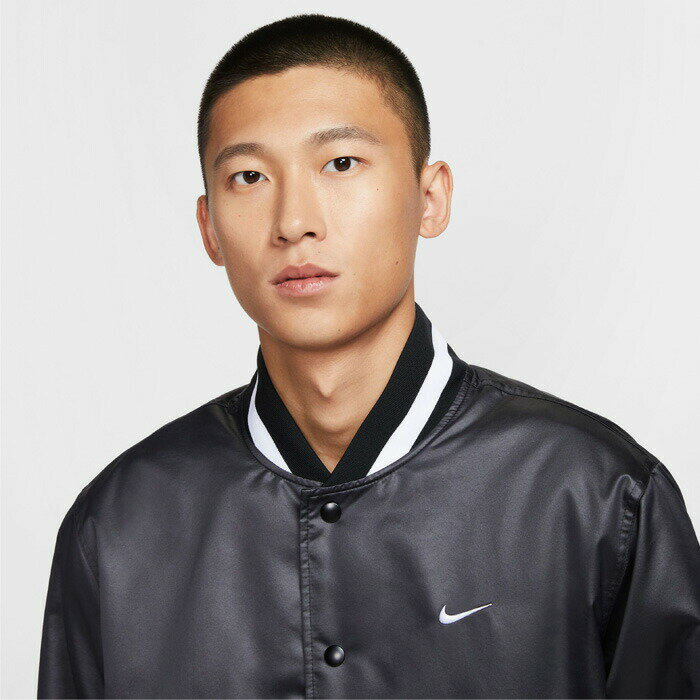 NIKE/ナイキ バスケットボール トップス ジャケット_アウター/2024FWビンテージテイストのバスケットボールギアをイメージした、断熱性の高いサテン調のジャケット。バーシティジャケットとシューティングシャツをミックスしたスタイルに仕上げました。 ミッドレイヤーの上に重ね着しやすいルーズフィット。裾と袖口のストライプの縁取りが、シグネチャースタイルのDNAを演出します。Nike Therma-FITテクノロジーが体温調節をサポートし、寒い日も暖かい着心地をキープ。撥水加工を施したサテン調のウーブンシェル素材が、雨天でもさらりとした状態をキープ。スナップボタン付きのハンドポケットに小物を安全に収納可能。袖部分のニット裏地で保温性を強化。ハンガーループフルレングスのメタルスナップボタン付き刺繍のスウッシュロゴ■生産国■中国■品質素材■本体/裏地/中わた:ポリエステル100% ポリエステル92%、スパンデックス8%■カラー■ブラック/ブラック/ホワイト■サイズ■ルーズフィット:ゆったりとリラックスした着心地商品の仕上がり寸法 (単位:cm)S : 着丈65/胸囲108/裾幅44/肩幅47/袖丈62M : 着丈66/胸囲114/裾幅46/肩幅48/袖丈62L : 着丈66/胸囲120/裾幅50/肩幅49/袖丈62.5XL : 着丈66/胸囲126/裾幅53/肩幅50/袖丈632XL : 着丈67/胸囲130/裾幅55/肩幅52/袖丈643XL : 着丈68/胸囲134/裾幅57/肩幅54/袖丈66お届けする商品の寸法と若干の差異が生じる場合がありますNIKE/ナイキ バスケットボール トップス TFRPLSYNFLDNAウーブンジャケット