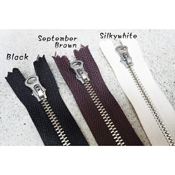 ※お写真のサイズは20cmとなります。 ※お問い合わせが多数ございまして、15cmも販売させていただくことになりました。 〇素材 ポリエステル 〇カラー 引手,スライダー,エレメント→消しシルバー色 テープ色→ブラック,セプテンバーブラウン(こげ茶),シルキーホワイト 〇サイズ 15cm, 20cmより選択 (両止め金具の先端より測定) 〇個数 1本 (3色より選択) 1940年代のデザインを現代風にアレンジした、WALDESのヴィンテージジッパーです。 サイズ規格は3番, 長さは15cm 20cm, 止めあり, 金具部分は消しシルバー色,テープの色はブラック,セプテンバーブラウン(こげ茶),シルキーホワイトの3色ございます。 ※シルキーホワイトは写真では真っ白に見えますが、実際はアイボリーに近いホワイト色です。 ペンケースやポーチ,ラウンドに使用して車等のキーケースなど様々なものに使用できます。 レザークラフト、ハンドメイドにぜひお使い下さいませ。 〇在庫数を超えるご注文について〇 ・予約注文として在庫を超えるご注文が可能です。 ・納期は平日営業日5日から10日ほどかかります。 ・他の商品(複数のご注文)を購入されている場合、基本的に全て揃い次第、発送手配させていただきます。 ※ご了承の上、ご注文下さいませ。