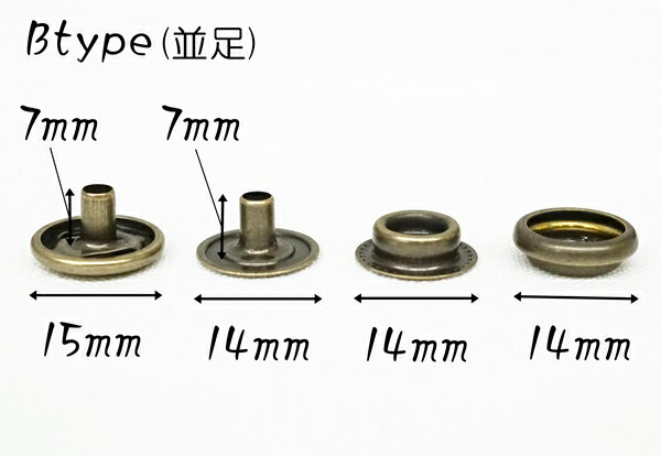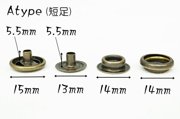 〇素材 鉄 〇カラー アンティーク(やや明るい色目) 〇サイズ Atype (頭:直径15mm 足の長さ5.5mm)(足:直径13mm 足の長さ5.5mm) 画像参照 Btype (頭:直径15mm 足の長さ7mm)(足:直径13mm 足の長さ7mm) 画像参照 Ctype (頭:直径15mm 足の長さ9mm)(足:直径13mm 足の長さ9mm) 画像参照 ※上記サイズはメーカーが定めているサイズ表記です。 Atypeの頭部分の足の長さは約5mm(足先端から付け根まで測定) Btypeの頭部分の足の長さは約6.4mm(足先端から付け根まで測定) Ctypeの頭部分の足の長さは約8.3mm(足先端から付け根まで測定) ※上記サイズはノギスにて測定した実寸値を表記しています。 ※多少誤差が生じる場合がございます。予めご了承ください。 〇個数 4つ組を50個セット NO.7050番の日本製のジャンパーホック(HATO)です。ウォレットやキーケース、ポーチ等にもお使いいただけます。 お得な50個セットです。 Atype(短足)とBtype(並足)よりお選びいただけます。 ※7050番専用の打ち具が必要になります。ご確認の上お買い上げ下さいませ。