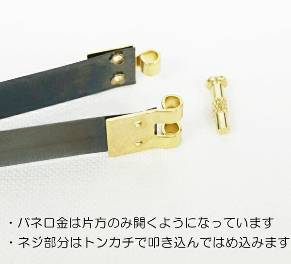 ※細タイプ(縦1cm)になります。 〇カラー ゴールド(金具部分) 〇サイズ 横120mm(12cm)、 縦 バネ部分10mm , 金具部分10.5mm(ネジの出っ張り部分を含むと11.8mm) 〇個数 10個 長さ12cm(細タイプ)のバネ口金です。日本製を使用しています。 お得な10個入りです。 ポーチや小物入れなどにお使いいただけます。 ・バネ口金は片方のみ開くようになっており、作製する布等に装着してから、付属のネジをセットし、トンカチで叩き込めば固定されます。 ハンドメイドにぜひお使い下さいませ。