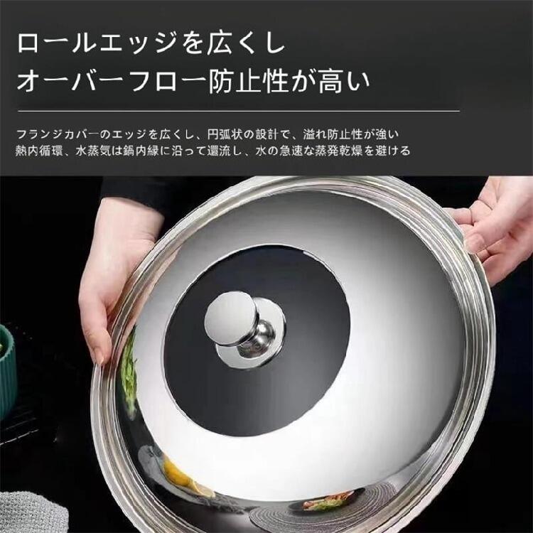 【カラー】シルバーシルバー30cm シルバー32cm シルバー34cm シルバー36cm シルバー38cm シルバー40cm生産国:中国【この商品について】万能な調理器具対応:こぼれ防止蓋つきステンレス鋼調理器具は、マルチグリドルや中華なべなど、さまざまな調理器具に対応しています。自宅の料理で使いやすく、食材をしっかりと保護します。ガラスポット蓋:透明なガラスポット蓋は、調理の進捗を確認できるだけでなく、熱や湿気を閉じ込め、食材の風味を引き出します。美味しく健康的な料理を作るための必須アイテムです。ドームテント付き:ドームテント付きの調理器具蓋は、蒸気や煙をしっかりと閉じ込め、料理の風味やジューシーさをキープします。また、外部からのゴミや虫の侵入を防ぎます。耐久性のあるステンレス鋼:高品質なステンレス鋼素材は耐久性があり、長持ちします。熱や衝撃に強く、さまざまな調理シーンで頼りになる存在です。簡単にお手入れ:ステンレス鋼素材は非常に簡単にお手入れできます。洗剤とぬるま湯で簡単に汚れを落とし、いつも清潔な状態を保ちます。簡易包装となりますのでご理解の程よろしくお願いします。手動測定による1〜3cmの測定偏差を許容してください。モニターや光の効果が異なるため、実際の色は写真の色と若干異なる場合があります。仕様デザインは改良のため予告なく変更することがあります。