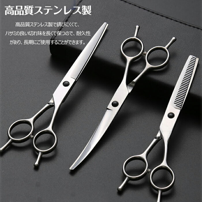 デザイン:ストレートバサミ、スキパサミ、カーブバサミ 材質:ステンレス 【高耐用性】高品質ステンレス製で錆びにくくて、ハサミの良い切れ味を長くて保つので、耐久性があり、長期にご使用することができます。 【様々な犬種に対応】大きい犬種やボディラインが切りやすい、小さい犬種や顔周り?足回り、大きさや毛足の長さに関係なく、どのワンちゃんにもご使用頂けます。 ※素材の注意書き:お使いのモニターの発色具合によって、実際のものと色が異なる場合がございます。