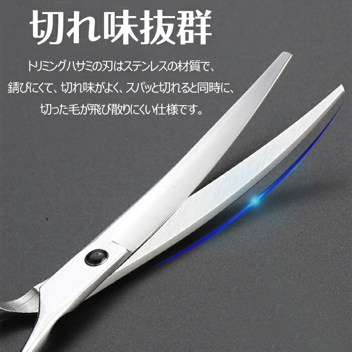 トリミングハサミ ペット用 グルーミングはさみ ペットトリミングセット 美容工具 ステンレス材質 ストレートバサミ スキパサミ カーブバサミ 初心者向け 長い短い髪用 犬 猫ペット用