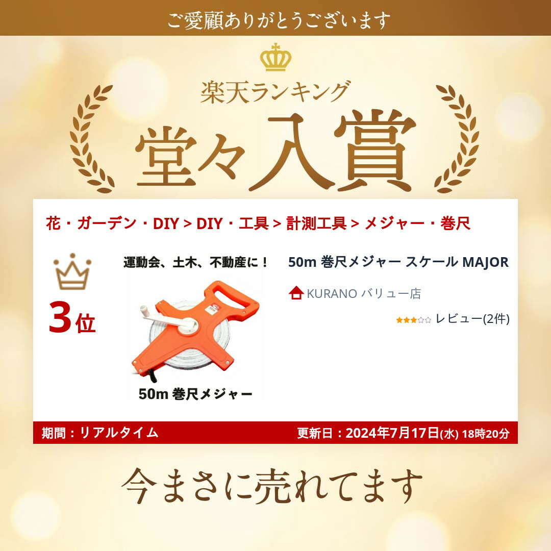 3倍速 メジャー 巻尺 50m 巻...