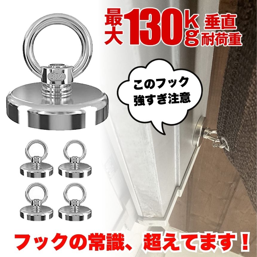 こんなお悩み、ありませんか?フックがすぐに落ちてしまってストレス。重たい工具や荷物を掛ける場所がない。キャンプ時、タープやランタンの設置に困る。オフィスやキッチンで整理整頓ができない。賃貸住宅なので壁に穴を開けられない。マグネットフックがすぐズレる・動く。フックが安定せず、物を落としてしまう。安物の磁石で耐久性が低く、すぐ壊れる。「あともう少し固定力があれば…」「ここにフックがあればもっと便利なのに…」そんな“小さな不満”が、積もり積もって大きなストレスに。日常生活でもアウトドアでも、モノをしっかり固定できないことが、作業効率や快適さを大きく損ねているかもしれません。でももう、大丈夫です。その悩み、このフックがすべて解決します。【この商品の選ばれるメインポイント】驚異の固定力!耐荷重最大130kg超強力ネオジム磁石が、工具からアウトドア用品までガッチリ固定。頼れる安心感。家でも外でも、自由なアイデアで活用できる万能さ。穴あけ不要で繰り返し使える!工具不要で設置も移動も簡単。壁を傷つけないから、賃貸でも安心して使えます。1. 驚異の耐荷重性能最大130kgの垂直耐荷重!ネオジム磁石で、従来のマグネットフックを超える固定力。→ 一般的なマグネットフックの弱点は、重い荷物をかけるとズレたり落ちたりすること。しかしこのマグネットフックは、最大130kg(垂直)・最大32kg(水平方向)の荷重に耐える設計。工具、調理器具、傘、バッグ…なんでも掛けてOK。強力な保持力で、プロの現場でも信頼されるスペックです。2. 6サイズ展開で使い分け自由直径25mm〜60mm、用途に合わせて選べる!→ フックの大きさが選べるので、小物から大型の工具まで柔軟に対応可能。家庭用、業務用、アウトドア用など、シーンに応じてベストなサイズが選べます。3. 穴あけ不要・工具不要壁を傷つけず、賃貸OK!→ 強力マグネット式なので、ネジやビスは一切不要。貼るだけで設置完了。取り外しても跡が残らず、再利用も可能。4. 滑らかな底面で対象を傷つけない家具や壁を保護。安心の構造。→ マグネット底面は滑らかで、接地面を傷つけにくい加工が施されています。繰り返し使っても安心。5. アウトドアや旅先で大活躍タープ固定、ランタン掛けなど多用途!→ キャンプやBBQなどのアウトドアシーンで活躍。旅行先のホテルや車内でも、即席の収納スペースを作れる便利アイテムです。6. 軽量コンパクトで持ち運び楽々いつでもどこでも手軽に使える!→ 小さいサイズでも超強力。バッグやツールケースに1個忍ばせておけば、いざという時に役立ちます。こんな人におすすめ!キャンプやアウトドアが趣味の方賃貸物件で壁に穴が開けられない方整理整頓が苦手な方DIYやガレージ作業が好きな方キッチン周りをすっきりさせたい方工具を頻繁に使う職人・作業者どこでも“掛ける場所”を自由に創る!超強力マグネットフックがあなたの空間活用力を大幅にアップ!アウトドア、オフィス、キッチン、旅先——使い方は無限大。いま手に入れて、あなたの生活をもっと快適に、スマートに。Q. 磁石の力が弱くなりませんか?→ 高品質ネオジム磁石を使用。長期間使っても磁力の低下を感じにくい構造です。Q. 家具を傷つけないか心配…→ 滑らかな底面設計で、接地面を優しく保護します。「“掛けたい場所にフックがない”ことで、毎日どれだけ不便を感じていますか?」その悩み、もう終わりにしませんか?「この小さなフックが、あなたの“収納力”を爆発的に変える!」“固定できない不満”が、生活のあらゆる場面に潜んでいます。今こそ、そのモヤモヤを一掃する時です。送料無料