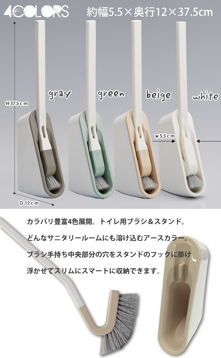 スリム トイレブラシ es(エス) / 日本クリンテック 仕様 サイズ:約幅5.5cm×奥行12cm×高さ37.5cm 材質:ポリプロピレン 原産国:中国 ※WEB上のため、実物と画像とで色など、多少違う点がございますのでご理解ください。 ※商品仕様・サイズ等は変更する場合があります。 ※ご注文日より通常5営業日以内に発送(土日祝日を除く)となります。 商品の特徴 ●超スリム!幅5.5cm!ブラシとスタンドの一体型は、スマートなトイレ空間を演出します。 ●使いやすさを追求したブラシヘッドは洗いにくい便器のフチ裏にも効率よくブラシが届きます ●ブラシを吊り下げることでヘッド部分が傷みにくく、乾燥も早いオープンスタンドでスッキリ収納。 日本クリンテック トイレ掃除 トイレブラシ すき間ブラシ 省スペース 超スリム 安い かっこいい 上質 高級 ホテルライク 時短 収納 ナチュラル シンプル ナチュラル 北欧 セレブ 季節の贈り物に 父の日 母の日 敬老の日 孫の日 御中元 敬老の日 ハロウイン クリスマス 冬ギフト お歳暮 お年賀 お正月 年末年始 バレンタイン ホワイトデー 日々の心づかい、ちょっとした手みやげに 御祝 御礼 御挨拶 粗品 お使い物 贈答品 ギフト プレゼント お土産 手土産 贈りもの 進物 お返し お祝いや内祝いなど祝儀の品に 引き出物 お祝い 内祝い 結婚祝い 出産祝い 引き菓子 快気祝い プチギフト お誕生日 七五三 進学内祝 入学内祝超スリム!幅5.5cm!ブラシとスタンドの一体型は、スマートなトイレ空間を演出します。 使いやすさを追求したブラシヘッドは洗いにくい便器のフチ裏にも効率よくブラシが届きます。 ブラシを吊り下げることでヘッド部分が傷みにくく、乾燥も早いオープンスタンドでスッキリ収納。 →他シリーズはこちらから