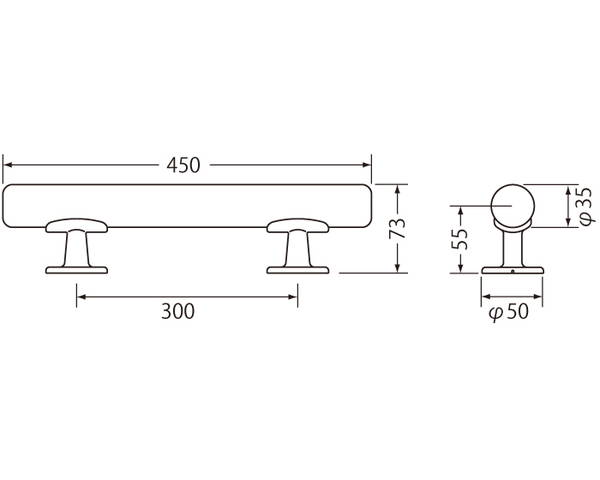 BR-501 ミニ手摺直受450ミリAG/Mオーク【シロクマ】