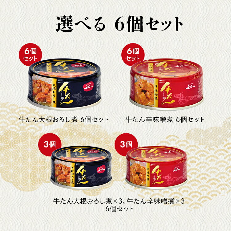 牛タン おつまみ おかず 【6個】牛たん大根おろし煮 利久 牛たん おつまみ ご飯 お酒 肉 宮城 牛 米 仙台 大根おろし煮 辛味噌煮 大根おろし煮+辛味噌煮【D】