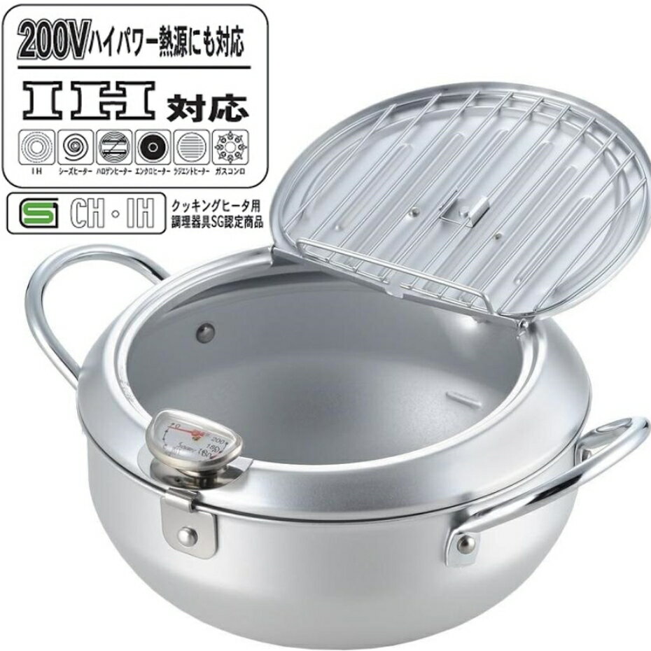ヨシカワ 味楽亭 II SJ1024 フタ付天ぷら鍋 20cm 温度計付き ガス・IH対応