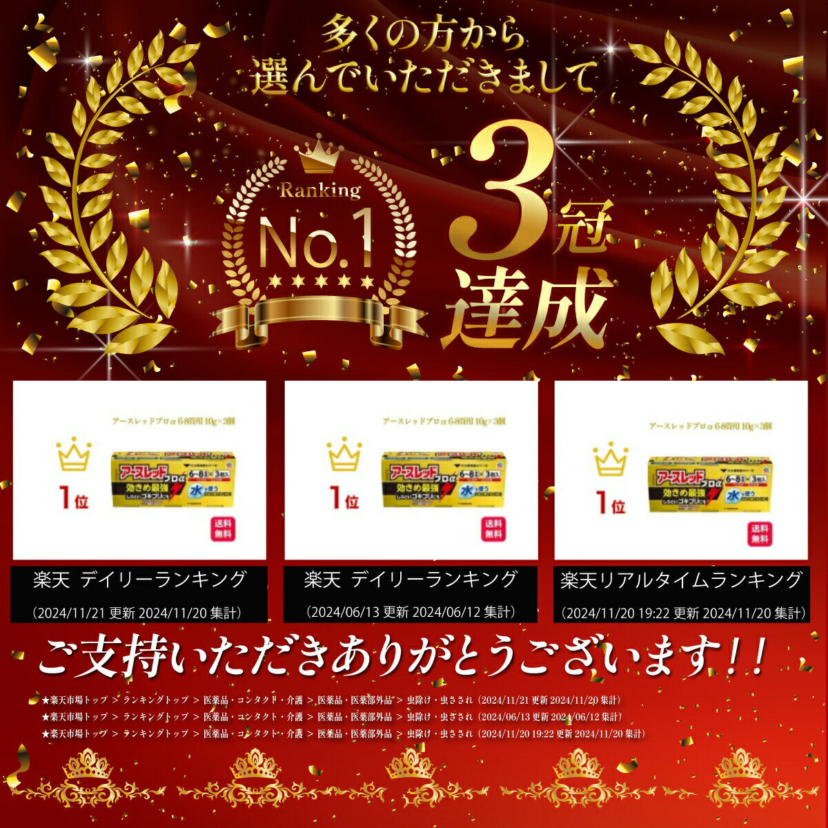 商品情報商品名アースレッドプロα容量10g×3個入使用上の注意【注意】人体に使用しないこと■してはいけないこと(守らないと副作用・事故が起こりやすくなります)●人体に使用しないでください。●薬剤を吸い込まないように注意してください。万一吸い込んだ場合,咳き込み,のど痛,頭痛,気分不快等を生じることがあります。特にアレルギー症状やかぶれなどを起こしやすい体質の人,病人,妊婦,子供は薬剤を吸い込んだり,触れたりしないでください。●退出後,必ず2時間以上経過してから入室してください。換気のために入室するとき,刺激に敏感な人は薬剤を吸い込むと激しく咳き込み,嘔吐したり,呼吸が苦しくなることがあります。必ず,タオルなどで口や鼻を押さえて薬剤を吸い込まないようにしてください。アレルギー症状やかぶれを起こしやすい体質の人などは,特に注意をしてください。●使用する部屋や家屋から薬剤が漏れないように注意してください。漏れた薬剤を吸入すると前記のような症状になることがあります。●缶をセットしたら,すみやかに部屋の外に出て,戸を閉めてください。●缶は水に浸すとすぐに熱くなるので,直接手を触れないでください。ヤケドをする恐れがあります。●使用後は,部屋を十分に換気してから入室してください。■相談すること●万一身体に異常が起きた場合は,直ちにこの文書を持って本品がピレスロイド系殺虫剤と,オキサジアゾール系殺虫剤及びカーバメート系殺虫剤の混合剤であることを医師に告げて,診療を受けてください。その他の注意■その他の注意●定められた使用方法・使用量を守ってください。●皮膚,目など人体にかからないようにしてください。薬剤が皮膚についた場合は,石けんと水でよく洗ってください。また,目に入った場合は,直ちに水でよく洗い流してください。●火災報知器が作動することがあります。火災報知器の直下では使用せず,一時的に添付の専用カバーまたはポリ袋などで覆いをして使用してください。 その際,火気の管理には十分注意し,処理後は必ず覆いを取り除いてください。●飲食物,食器,子供のおもちゃ,飼料,美術品,仏壇仏具などに薬剤がかからないようにしてください。●小鳥などのペット類,観賞植物は換気するまで部屋の外に出してください。また,観賞魚や観賞エビはエアーポンプを止めて完全密閉(水槽に覆いをして,ガムテープなどで密閉する)にして使用するか,換気するまで部屋の外に出してください。●はがね製品,銅やシンチュウ製のものは変色することがあるので,覆いをするか部屋の外に出してください。●故障の原因となるので,パソコン,テレビ,ゲーム機器,オーディオ・ビデオ製品などの精密機器にはカバーをかけ,テープ,ディスクなどは箱に収納してください。(大型コンピューターのある部屋では使用しないでください。)●はく製,毛皮,和服(金糸,銀糸の入ったもの),衣類などは,変色したりシミになることがあるので,ポリ袋に入れるか覆いをするなどして,直接薬剤がかからないようにしてください。●本品は,ふとんなど寝具の害虫駆除には使用しないでください。●使用後は,小さな虫の死骸などをとり除くため軽く掃除機掛けなどを行ってください。効能・効果ゴキブリ,屋内塵性ダニ類,イエダニ,ノミ,トコジラミ(ナンキンムシ),ハエ成虫,蚊成虫の駆除用法・用量各害虫の駆除には次の使用量をお守りください。(缶サイズ):ゴキブリ・屋内塵性ダニ類・イエダニ・ノミ・トコジラミ(ナンキンムシ)の駆除:ハエ成虫・蚊成虫の駆除10g缶:6〜8畳(10〜13m2)あたりに1缶:12〜24畳(20〜40m2)あたりに1缶20g缶:12〜16畳(20〜26m2)あたりに1缶:24〜48畳(40〜80m2)あたりに1缶アースレッドプロαには10g(6〜8畳用),20g(12〜16畳用)があります。成分分量製剤中d,d-T-シフェノトリン 5%メトキサジアゾン 7%プロポクスル 2%添加物 アゾジカルボンアミド、他2成分保管及び取扱い上の注意●湿気を避け,子供の手の届かない涼しいところに保管してください。●使用後の缶は不燃物として廃棄してください。その際,缶に水をかけないでください。使用時に水を入れ忘れたり,水が不足していた場合は発熱が不十分となり,後から水をかけると蒸散する恐れがあります。消費者相談窓口会社名:アース製薬株式会社住所:〒101-0048 東京都千代田区神田司町2-12-1問い合わせ先:お客様窓口電話:0120-81-6456受付時間:9:00〜17:00(土,日,祝日を除く)製造販売会社アース製薬(株) 添付文書情報: J1101000163_02_A.pdf会社名:アース製薬株式会社住所:〒101-0048 東京都千代田区神田司町2-12-1販売会社アース製薬株式会社剤形その他商品区分第2類医薬品区分日本製・医薬品広告文責株式会社Glood roi070-8435-9613【第2類医薬品】 アース製薬 アースレッド プロα 6〜8畳 10g×3個入 ゴキブリ ダニ ノミ 駆除 アースレッドプロ アースレッドプロα アース 対策 予防 イエダニ トコジラミ ナンキンム ハエ 蚊 殺虫剤 殺虫 ●トリプルの有効成分を配合したアースレッドの中で最も効きめが強いタイプです。●隠れ