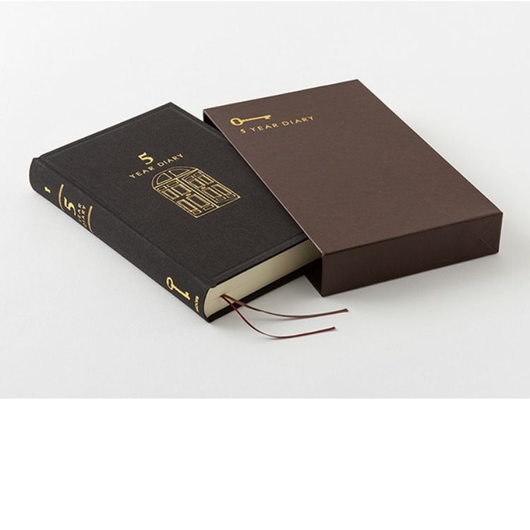 商品情報商品名5年連用日記カラー黒色/赤色内容本文/366ページ(横罫)罫幅6mm付録/3ページしおりひも付(2本)表紙/布貼り、金箔押し製本/糸かがり綴じサイズ本体/H185×W117×D25mmケース/H192×W120×D30mm素材本文/MD用紙製造元ミドリ区分日本製・文具広告文責株式会社Glood roi070-8435-9613【2色から選べる】 ミドリ 5年連用日記 扉 黒 赤 ダイアリー ミドリ 5年連用日記 midori 日記 ダイアリー 5年連用ダイアリー 記録 送料無料 5年連用日記去年の今日を振り返りながら、読む楽しみ、書く楽しみを一度に味わうことができる5年連用日記。1年目は1段目、2年目は2段目… 同じ日の記録を5年分一覧でき、忘れていたできごとに思いがけず「再会」できる、時間と共に増していく愛着を愉しめる日記です。進学や就職、結婚などをきっかけに始める方も多い連用日記は、大切な方の人生の節目に贈るプレゼントとしてもおすすめです。 5