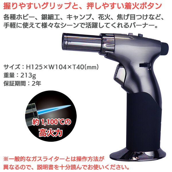 ハンディバーナー PC-7‐ガスライター ガス注入式 高火力 2年保証 銀細工 ホビー ターボライター ガスバーナー ガストーチ キャンプ 花火 焦げ目つけ ペンギンライター
