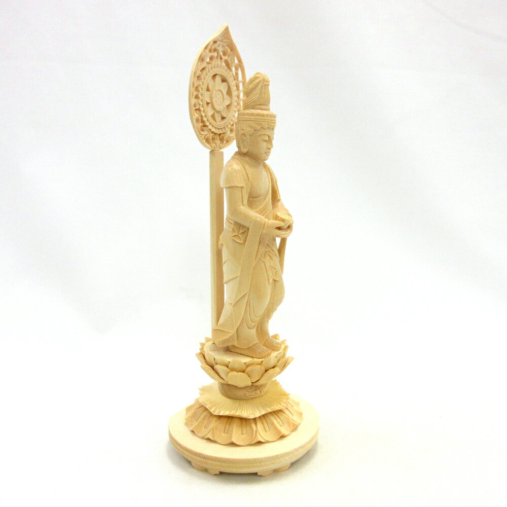 仏像 聖観音菩薩 立像 蓮台持 4.0寸 宝珠光背 円台 桧木 観世音菩薩 観自在菩薩 六観音 観音