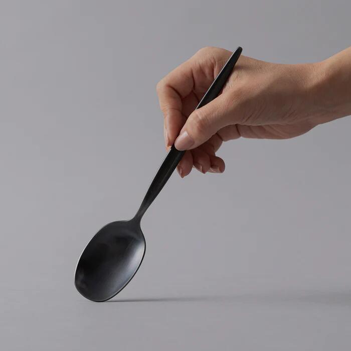 ステンレスの皮膜を調整する「発色」という加工技術で黒色を発色させています。 一本一本異なる色合いが出るのが特徴で、使い続けていただくことで、皮膜の厚みが変わり違う表情を見せてくれる他には無い、ブラックステンレスのカトラリーです。 ハンドルの裏側は膨らみを持たせ、表面は窪ませることで、カトラリーを持った時のフィット感を追求しました。 ステンレスや刃物、洋食器など「金物の産地」として有名な、新潟県の燕三条で一つ一つ丁寧に作っています。 サイズ 長さ19.5 class="trul" 材質 ステンレス 原産国 日本 使用方法 食洗器 :可 使用上の注意 ハンドメイドのため、色ムラ等個体差があります。予めご了承いただき、1点1点の違いをお楽しみください。 洗浄の際は中性洗剤をお使いの上、柔らかいスポンジをご使用ください。 金属類のタワシはキズやサビの原因になりますのでご使用はおやめください。 使用後つけ置きをしてしまうと錆が発生する恐れがありますのでお止めください。 また洗浄後は水分をよく拭き取ってから保管してください。