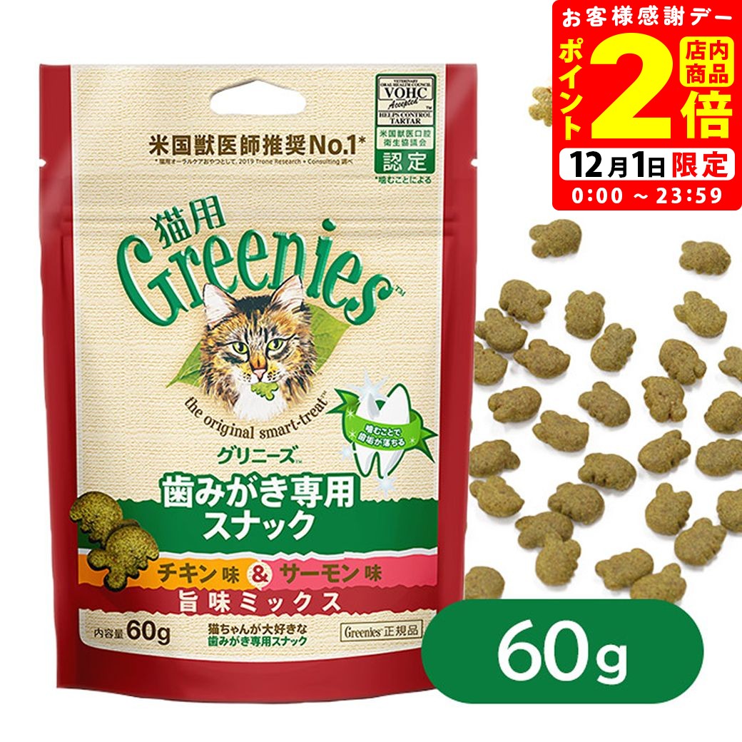 ポイント全品2倍!12/1限定|公認店 グリニーズ 猫用 キャット チキン味&サーモン味 旨味ミックス 60g オーラルケア
