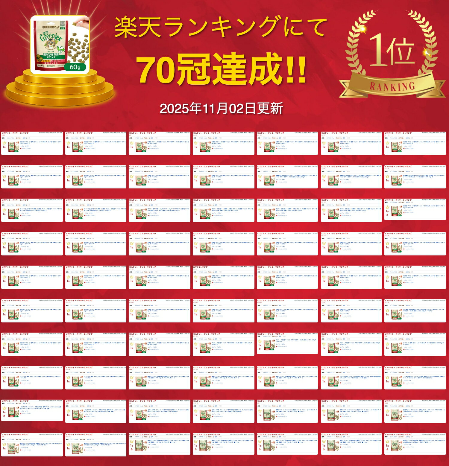 おやつ感覚で健康ケアサポート♪グリニーズCAT! わんちゃん実食してみました♪ 噛むことで歯垢と歯石の蓄積をコントロール! いつもの食事と併せてご褒美やおやつとして与えてください。 ■オーラルケアを習慣化するために■ 美味しく食べて毎日歯磨き♪ 【お知らせ】 リニューアルに伴い、パッケージ・内容等予告なく変更する場合がございます。また、リニューアル時期は旧製品と新製品が混同する場合がございます。予めご了承ください。 ご購入後、商品に不備・不良等がございましたら、下記製造メーカーまでお問い合わせくださいますよう、お願い致します。 ■ニュートロ・グリニーズ お客様相談室 〒113-0033 東京都文京区本郷3-14-11 日平本郷ビル 0120-207-006 平日9:30-16:00 (土日、祝祭日、年末年始12月27日-1月4日を除く) ▼ニュートロ・グリニーズ正規販売店 【本店】楽天ペッツビレッジクロス 【姉妹店】楽天ゆーとぴあ 【姉妹店】楽天カレッツァ歯みがきが難しい猫のための、デンタルケア専用おやつ! 猫は約7日間で歯垢が歯石になってしまいます。さらに歯石のザラザラが歯垢のたまりやすい環境を作り、悪循環に! これを防ぐために必要です。 ・口の中に歯ブラシや手を入れられることを非常に嫌がる! ・犬のようにしつけをすることが難しい! ・口腔内のトラブルが多く、さわると嫌がる! ・一度嫌な思いをすると二度とさせてくれない! 原材料 チキンミール、小麦、米、コーングルテン、鶏脂*、オーツ麦繊維、タンパク加水分解物、サーモンミール、亜麻仁、乾燥酵母、ビタミン類(A、B1、B2、B6、B12、D3、E、コリン、ナイアシン、パントテン酸、ビオチン、葉酸)、ミネラル類(カリウム、カルシウム、クロライド、コバルト、セレン、ナトリウム、マンガン、ヨウ素、亜鉛、鉄、銅)、アミノ酸類(タウリン、メチオニン)、酸化防止剤(ミックストコフェロール、ローズマリー抽出物、クエン酸)、着色料(スイカ色素、ゲニパ色素、ウコン色素) *ミックストコフェロールで保存 保証成分 たん白質 27.0%以上 脂質 12.0%以上 粗繊維 10.0%以下 灰分 9.0%以下 水分 10.0%以下 タウリン 0.1%以上 代謝エネルギー 355kcal/100g - - 原産国 アメリカ 内容量 60g ↓↓よくあるご質問!正規品と並行物の違いについてはコチラをご覧下さい!↓↓ 【本製品は正規品です】 ・正規品はアメリカからの長距離輸送を考慮した特別な品質対策を行なっています。 ・適切に管理された環境下での輸送を行っています。輸送中の温度変化は製品の品質に悪影響を与えます。正規品は約20℃に保たれた状態で輸送されます。 ・正規品は厳しい品質チェック(日本に運ばれてきてからの品質の確認)が行なわれています。 ・正規品以外の品質保証はいたしかねますのでご了承下さい。