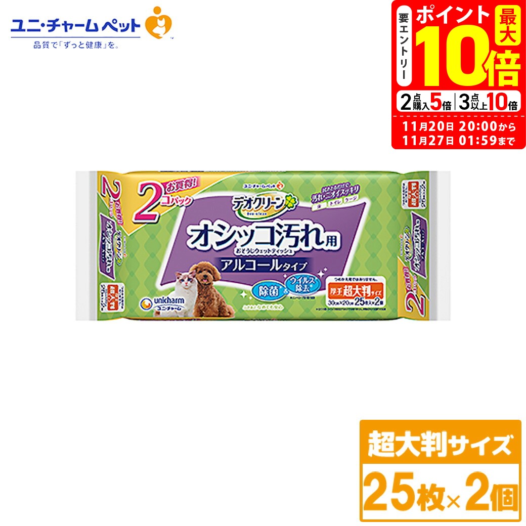 ポイント最大10倍!11/20 20:00〜11/27 01:59まで|ユニチャーム デオクリーン オシッコ汚れ用おそうじウェットティッシュ大判 25枚×2個