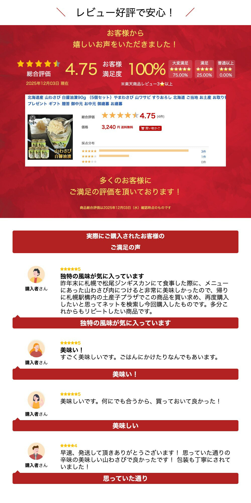 ★ご注意ください★ 沖縄県・離島には別途送料がかかります。 後日送料を変更したメールを送信させて頂きます。 名称 山わさび加工品 販売業者 株式会社品川甚作商店 原材料 山わさび(北海道産)、白醤油、(一部、小麦・大豆を含む) 内容量 1個 90g 栄養成分表示 (90g当たり) 熱量:78kcal 蛋白質:4.0g 脂質:0.1g 炭水化物:16.7g 食塩相当量:4.2g ※この表示値は目安です。 発送温度帯 冷蔵(10℃以下) 保存方法 要冷蔵10℃以下で保存してください。 取扱い上の注意 ●ご注文確定後のキャンセルは承ることができません。 ●商品の到着後すぐ商品の状態を確認してください。食べられないほどの潰れや傷みがある場合には、誠にお手数ですが、すぐにご連絡ください。 ●お客様のご都合による返品・交換の対応はできません。 ●お客様のご都合によって商品をお受け取りいただけない場合、送料・商品代をご負担いただきます。 海の幸 海産物 飯の友 肴 ありがとう 大切な方 グルメ お買い物マラソン 姉妹 インスタ 遅れてごめん父の日 食通 お爺ちゃん インスタ映え 遅れてごめんね父の日 ごほうび 味わい お婆ちゃん おじいちゃん 感謝 奥さん おしゃれ 贈物 希少 旦那さん おすすめ 贈りもの ワンランク上の 彼氏 おつまみ 贈答 バレンタイン 彼女 オツマミ 贈答用 暑中見舞い バーベキュー 先生 オツマミギフト 先輩 おつまみせっと サンキュー おせち料理 後輩 オツマミセット 同僚 おばあちゃん 子供の日 恩師 おめでとう 祝い 上司 北海道グルメ お見舞い 濃厚 社長 お花見 見舞い 旨み 友達 お宮参り御祝 逸品 義母 お歳暮 本物 義父 お取り寄せ 贅沢 全国 義弟 お祝い ご褒美 キャンプ 義兄 お祝い返し 宅呑み 家族 お世話になりました お楽しみ お取り寄せグルメ お正月 北海道応援 お中元 結婚内祝 お中元ギフト お中元人気 入園祝い お土産 入社祝い お年賀 お彼岸 福袋 入学 お返し 還暦祝い 進学 米寿祝い 卒業 お母ん 金婚式 入学式 お盆 銀婚式 卒業式 お礼 結婚記念 就職 お餞別 新入社員 カタログ 歓迎会 かわいい ギフト もったいない 卒園 クリスマス クリスマスプレゼント ロスコロナ グルメセット 初節句祝い ごあいさつ ゴールデンウィーク 応援コロナ 保育園 こどもの日 コロナ支援 新築祝い これから 支援 新築内祝 大学院 ごめんね 美味しいものが食べたい 卒業記念 ご挨拶 高級食材 進学祝い ご結婚御祝い 通販 ご出産御祝い セット つまみ ツマミ つまみ酒 お歳暮ギフト バースディ 歳暮 バースディー 御歳暮ギフト バースデー バレンタインデイ バレンタインデー 海鮮セット ひな祭り 海鮮ギフト プチギフト 海鮮 プレゼント ホワイトデイ ホワイトデー まだ間に合う よろしくお願いします 挨拶回り 異動 引き出物 引っ越し 引越しご挨拶 引出物 可愛い 華甲(かこう) 快気祝い 快気内祝い開院祝い 開店お祝い 開店御祝い 開店祝い 寒中お見舞 歓迎 還暦(かんれき) 還暦御祝い 還暦祝 帰省土産 記念品 詰め合わせ 金婚式御祝 銀婚式御祝 敬老の日 敬老の日ギフト 景品 結婚式 結婚祝い 結婚内祝い 御挨拶 御開業祝 御開店祝 御供 御結婚お祝い 御結婚御祝 御見舞御礼 御歳暮 御祝い 御出産御祝 御新築祝 御成人御祝 御正月 御卒業御祝 御中元 御中元ギフト 御中元人気 御入園御祝 御年賀 御年始 御礼 高級 高校 合格祝い 今までお世話になりました いままで 残暑見舞い 残暑御見舞 子供 七五三 七五三御祝 753 社会人 謝礼 取り寄せ 手土産 周年記念 就職祝い 就任 重要 祝還暦 祝御新築 祝御誕生日 祝事 出産御祝 出産祝い 出産内祝い 春夏秋冬 初節句御祝 初任給 初盆 小学校 昇格祝い 昇進祝い 上質 上品 職場 食べ物 食品 心ばかり 新歓 新築御祝 新築内祝い 新年会 親 親父 進学内祝い 進物 人気 水産 寸志 成人式 節句 全快祝い 粗品 送迎 贈り物 贈答品 卒業記念品 卒業祝い 退院祝い 退職 退職祝い 大学 大切な時 大切な人 端午の節句 誕生日 誕生日プレゼント 遅れてごめんね 中学校 中元 長寿のお祝い 定年退職 転勤 転職 内祝 内祝い 内祝いお返し 二次会 日常の贈り物 入園内祝い 入学祝い 入学内祝い 美味しい 兄弟 お父さん 父の日贈り物 めしの友 お母さん GW 父の日プレゼント 父の日海鮮 父 父の日 父の日ギフト 母さん 母の日 母の日ギフト 忘年会 北海道 幼稚園 来客 母の日海鮮 遅れてごめん母の日 遅れてごめんね母の日 関連商品旨いを味わう ほっき黄金 190g(3個セット)◎ 送料無料 ホッキ貝...利尻昆布のり130g (5個セット) ◎ 瓶詰 磯物語 海苔佃煮 北海...3,244円3,500円羅臼昆布のり130g (5個セット) 瓶詰 磯物語 海苔佃煮 北海道 ...羅臼昆布のり130g (10個セット) 瓶詰 磯物語 海苔佃煮 北海道...3,510円7,020円チーズ帆立 12粒入り(3個セット) 珍味 北海道 ほたて ホタテ 個...やみつきシャケ 150g (2個セット) 送料無料 南国料理人 西村淳...2,160円3,884円旨いを味わう 切干し松前250g (3個セット) ◎ 送料無料 合成着...かにっ子 80g (5袋セット)◎ 珍味 お菓子 カニ 蟹 おつまみ ...3,400円3,200円縞ホッケふっくら小樽煮 170g (5袋セット)◎ 海鮮珍味 