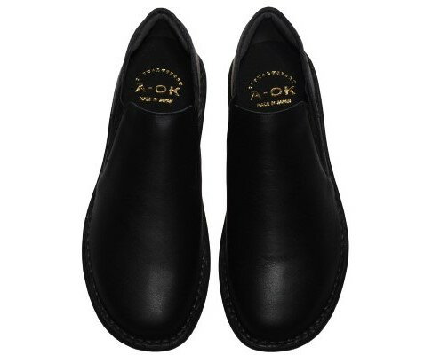 【靴のHOSHIKAWA】 『A-OK 19604』エーオーケー スリッポン22cm〜24.5cm EEEEブラック カジュアルレディース ローヒールサイドゴア牛革 幅広 国産
