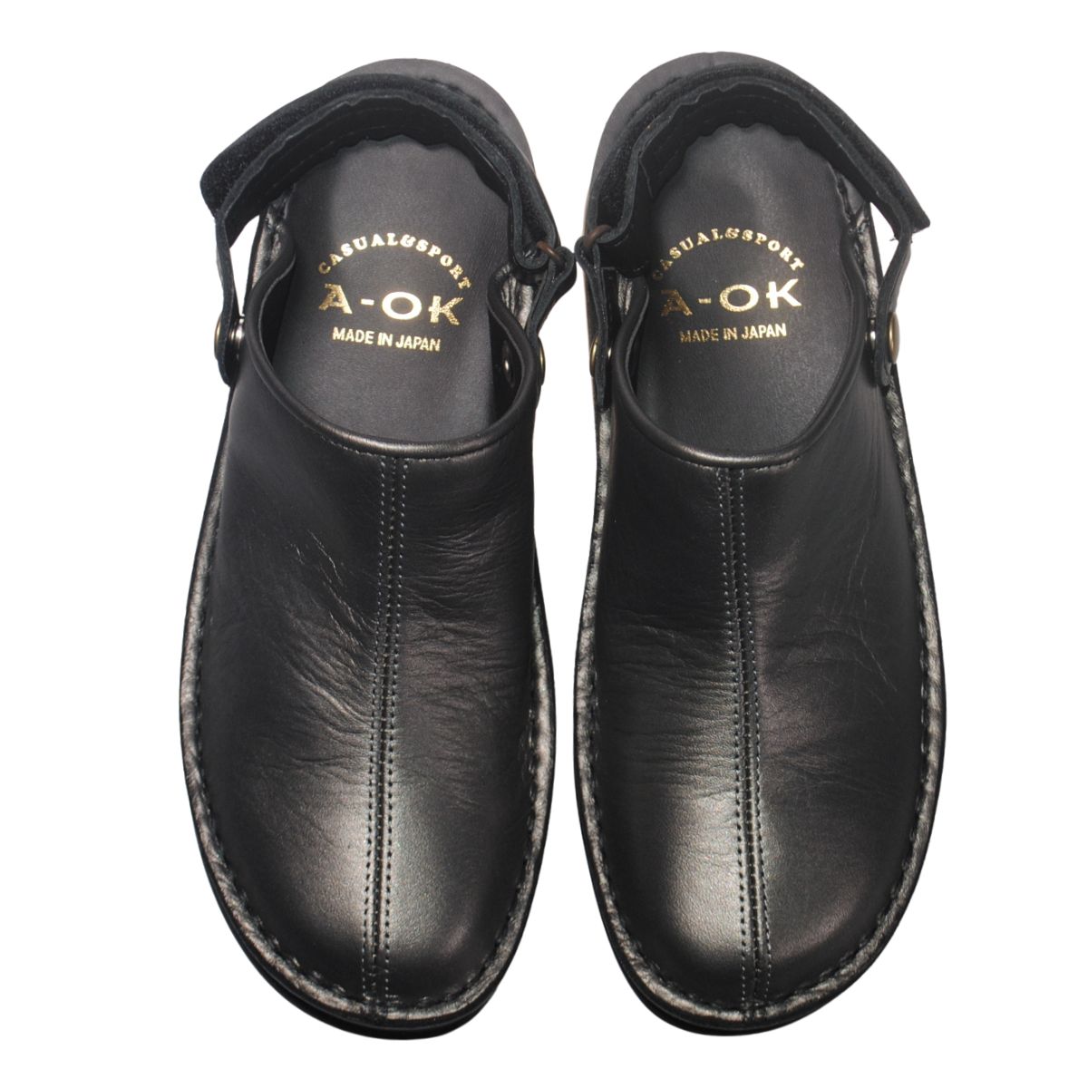 【靴のHOSHIKAWA】 『A-OK INCHOLJE 8171』21.5cm〜24.5cm レディースサボサンダル ガンメタ/ブラックバックベルト 厚底国産 本革 前詰まり