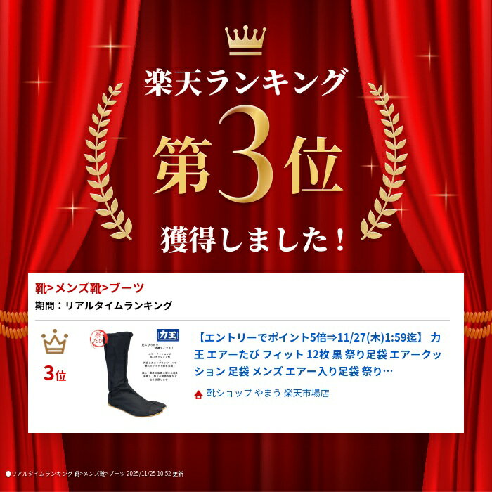 力王 エアーたび フィット 12枚 黒 祭り足袋 エアークッション 足袋 メンズ エアー入り足袋 祭りたび 祭りタビ