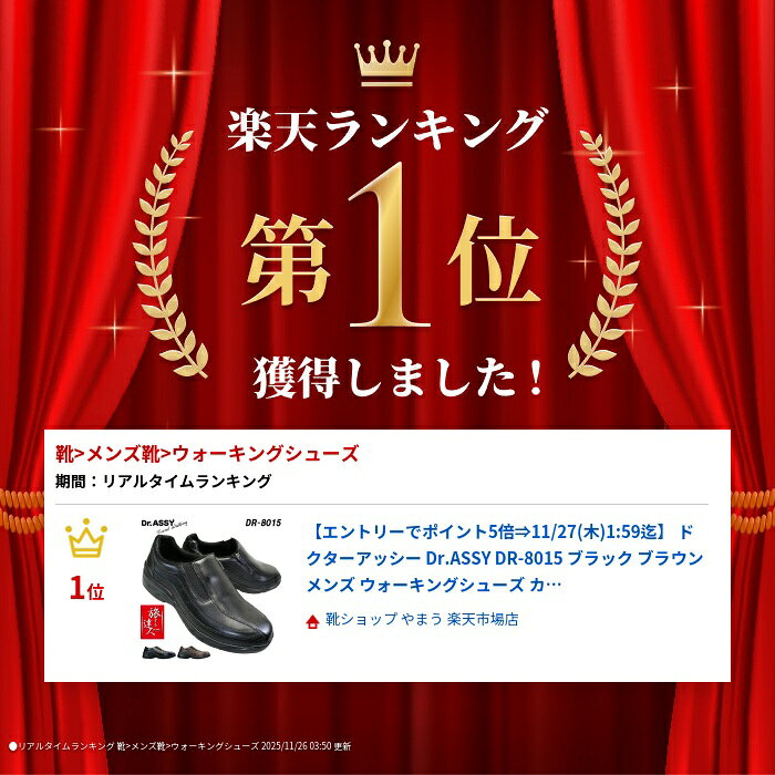 ドクターアッシー Dr.ASSY DR-8015 ブラック ブラウン メンズ ウォーキングシューズ カジュアルシューズ 革靴 スリッポン 4E 幅広 ワイド 本革 サイドファスナー サイドジップ コンフォート 楽々靴