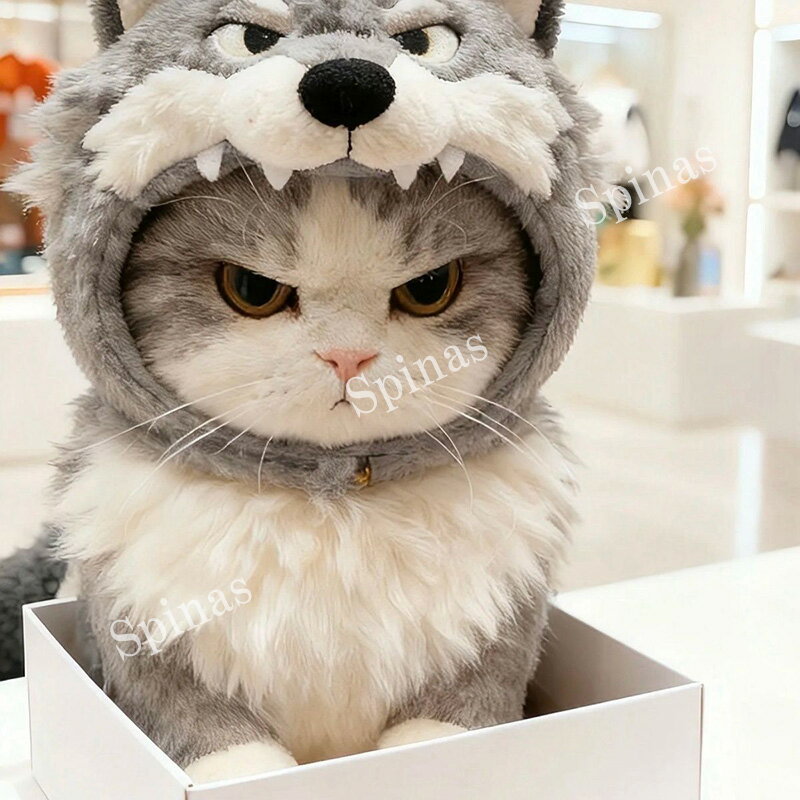 写真撮影やイベントにおすすめ!ペット用 猫 犬 かぶり物 オオカミ 狼 アニマル 動物 帽子 キャットハット ペット服 動物柄 小型猫 小型犬 撮影 年末年始 正月 きれいめ 祭り ギフト プレゼント 誕生日お祝い