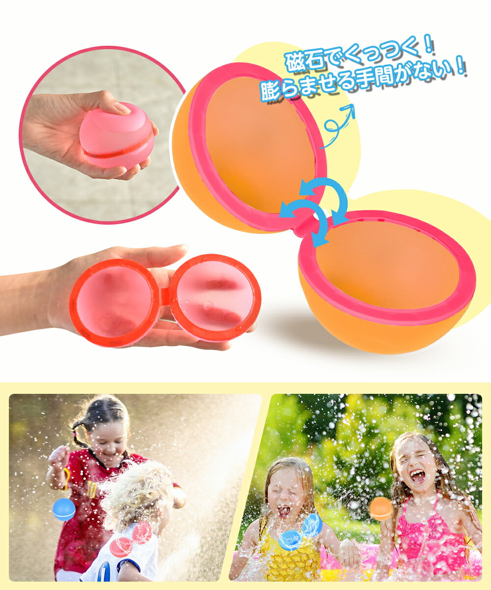 水風船【6個セット】繰り返し遊べる水風船 日本製 再利用可能 シリコン ウォーターボール 水遊び シリコン 磁気付き 割れない 痛くない 子供 お風呂 おもちゃ 簡単 安全 ボール型 タコ型 スター型