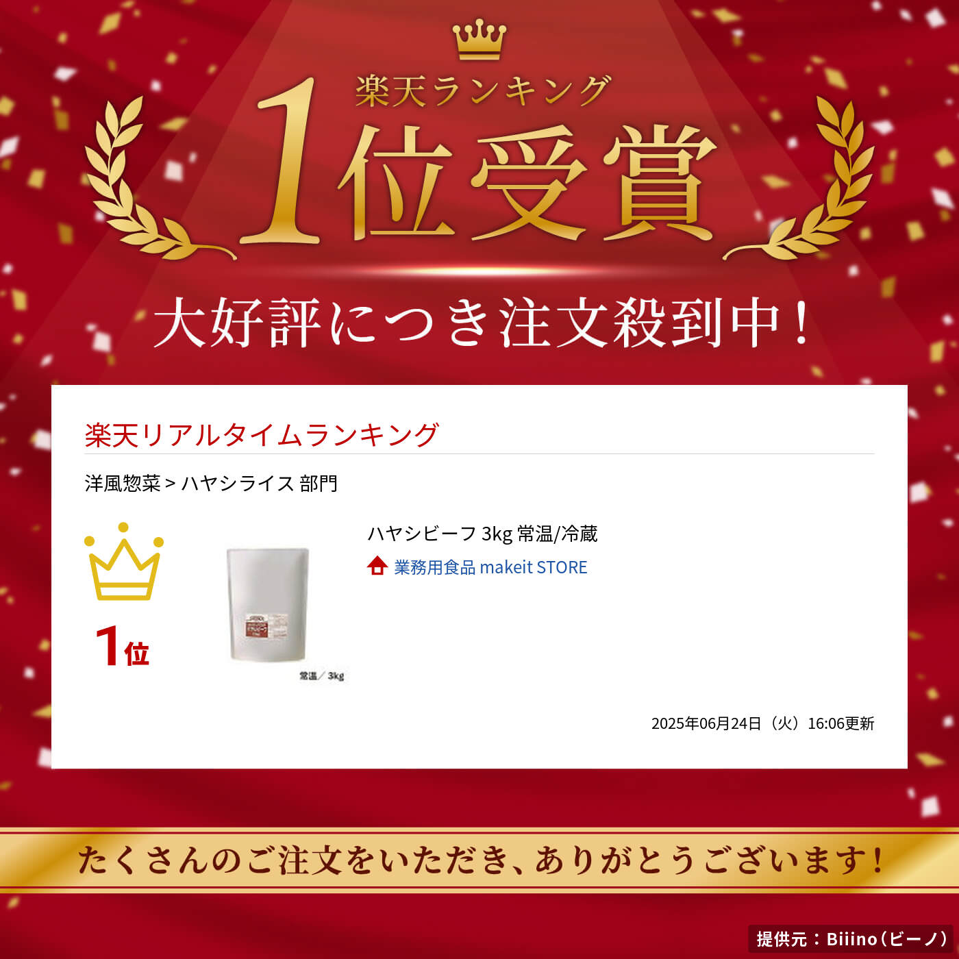 名称ハヤシ内容量3kg原材料たまねぎ、牛肉、トマトペースト、小麦粉、ビーフブイヨン、炒めたまねぎ、マッシュルーム水煮、砂糖、ラード、なたね油、でん粉、植物油脂調製品、ビーフ風味エキス、濃縮パインアップル果汁、食塩、赤ワイン、りんごピューレ、ビーフエキス、しょうゆ、ウスターソース、たまねぎ風味エキス、醸造酢、チキン風味エキス、にんじんエキス、水あめ、香辛料、たん白加水分解物/着色料(カラメル)、調味料(アミノ酸等)、pH調整剤、増粘剤(キサンタン)、塩化Ca、(一部に小麦・乳成分・牛肉・大豆・鶏肉・豚肉・りんご・ゼラチンを含む)賞味期限パッケージに記載保存方法直射日光、高温多湿を避けて保存してください。特長牛肉の旨味たっぷりのハヤシビーフ。アレルギー小麦、乳成分、牛肉、大豆、鶏肉、豚肉、りんご、ゼラチンお召し上がり方深鍋に中身を移し、焦げつかないよう時々かき混ぜながらゆっくりと温めてください。関連商品はこちらチキンブイヨンとラードで作ったディナ...1,810円ハヤシの王子さまレトルト 70g 常温 幼...140円ドライカレー250 250g 冷凍 カレー 電子...250円レストラン用バターライス(黄) 1kg 冷...830円レストラン用バターライス(白)1kg 冷...830円カットコーン5cm(US産) 50個入り 冷凍...2,810円南米産アスパラカット 500g 冷凍 業務用...800円グリルズッキーニコインカット 500g 冷...460円自然解凍OK いんげん斜めカット 500g ...350円自然解凍OK ミニミニブロッコリー 500g...310円自然解凍OK 蒸しなす(皮むき・乱切り...410円自然解凍OK 焼きなす 50g×5本入り 冷...280円きのこミックス 500g 冷凍 ひらたけ マ...810円乱切りカントリーポテトS 1kg 冷凍 食品...570円自然解凍OKさつまいもダイスカット1cm皮...330円ビストロポテトグルメマッシュポテト 1...1,330円ブロッコリーM 500g 冷凍 業務用 食品 ...310円カリフラワー 1kg 冷凍 業務用 食品 野...680円パリジャンキャロット 500g 冷凍 業務用...440円ダイスポテト9.5mm(US産) 1kg 冷凍 ...630円