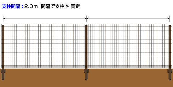 ※仕様変更によりダークブラウンの金網は14m/巻、支柱は8本組となります。 ※代金引換はご利用頂けません。 ※個人宅配送もお受けいたします。 ※製造時や輸送時に生じる多少のキズや汚れ等がございます。何卒ご理解下さい。 ※製造ロットにより、サイズや重量に若干の誤差がございます。 ※北海道・沖縄県・離島地域宛は別途送料が掛かります。 ※追加送料は都度見積りとなります。 ※配送は大型品のため陸便(船便)を利用します。地域により通常納期から1日〜3日ほど多くお時間を頂く場合がございます。 ※大量注文の場合は別途トラック便を手配する場合がございます。 ※金網の切り売り、支柱のバラ売りは行っていません。 ※金網は製造の都合上、端側に歪みが生じるため、記載の寸法より長めに巻かれています。 ※金網に巻かれているビニールの梱包は輸入時に破れたり剥がれている場合がございます。 寸法(約) ・金網: サイズ:幅14m×高さ1.0m 目合:横50mm×縦100mm 上下2行の目合は、横50mm×縦25mm 線径:2.2mm 重量:11kg ・支柱: 全長:153.0cm 幅:6.0cm 羽根の幅:12.0cm 重量:14.5kg 素材・材質 スチール ・金網:亜鉛メッキ+PVC加工 ・支柱:粉体塗装仕上げ 色 ダークブラウン セット内容 支柱8本、金網14m 【簡単金網フェンス改良型(ダークブラウン)】景観に配慮したこげ茶色 NEW【簡単金網フェンス改良型(ダークブラウン)】 ※商品紹介は簡単金網フェンス改良型(ダークブラウン)共通の内容を表示しています。 私有地などの管理・イノシシなど害獣の侵入防止 駐車場の仕切りやドッグランの簡易柵に ▼ドッグラン使用例(ダークグリーン) ※ダークグリーンは支柱2m間隔、11本 ※ダークブラウンは支柱2m間隔、8本 商品の特徴 ●よくあるご質問 Q.金網だと、すぐに錆びてしまうのでは? A.簡単金網フェンス改良型は、サビ対策として防錆処理を行いPVCコートがされています。 Q.簡単金網フェンス改良型を海辺で使っても大丈夫ですか? A.大丈夫です。雪が多く積もる北海道でもお使いいただけますし、海辺でもお使いいただけます。 Q.ネットを途中で切ったり、つなげたりして使えますか? A.金網はニッパーや金切鋏などでカットできます。 また、複数のネットをつないでお使いになる場合は、目合を少し被せてワイヤー等で止めてください。 Q.簡単金網フェンス改良型の設置に、基礎工事は必要ですか? A.基礎工事無しで設置可能です。支柱を土に刺し込むだけで、簡単に設置出来ます。 軟弱な地盤やしっかり固定したい場合などは、基礎工事を行う必要がございます。 Q.金網が固く、フックに引っかかりません。 A.金網は、支柱のフックの上側から引っ掛けてください。 下向きフックには、金網を下方向に引っ張りながら設置してください。 もしくは、金網をあらかじめ少し曲げてから掛けてください。 Q.簡単金網フェンス改良型は、直線以外にも設置は可能ですか? A.金網は折り曲げる事ができますので可能です。コーナーの支柱に力が掛かる場合は、別途深く打ち込んだ単管に支柱を繋げたり木柱や控柱をご用意ください。 Q.斜面の場合にも、設置は可能ですか? A.設置は可能です。支柱は重力方向に打ち込んでください。 金網は角度が変わる毎にカットしながらご使用ください。また、支柱のフックに掛からない場合は、別途ワイヤー等で固定して下さい。 手をつかないと登れないような傾斜が急な坂への設置は出来ません。 Q.支柱を差し込むための穴はどうやってあけたら良いですか? A.「かんたん穴掘り器 直径75mm」をご使用頂けますと、容易に穴を開けることが可能です。 右回しで地面にねじ込むだけなので簡単です。 また、「支柱ハンマー」を使用すると支柱を楽に打ち込む事が出来ます。 Q.従来型の簡単金網フェンスと併用できますか? A.フックの位置が合わない為、併用出来ません。 Q.サイズ違いの支柱とネットを使用することは可能ですか? A.標準セットより大きな支柱を使用する事は可能ですが、支柱の下向きフックが地面に埋まったり、フックの位置が目合に合わなくなる場合があります。現場の状況に応じてご対応ください。 【長所】 通常より約30cmほど深く地中に埋め込むため、より頑丈になります。 【短所】 2つある下向きフックが地面に埋まりますので、別途ワイヤー等で固定してください。 ==== サイズ違いを併用してフックの位置を調整する場合。 【長所】 通常より約5〜8cmほど深く地中に埋め込みが可能。 下向きフックを使用できます。 【短所】 支柱の上部が約23cmほど、ネットより上に出てしまいます。 Q.「簡単金網フェンス改良型」の支柱のフックの数は? A.支柱には上向きと下向きのフックがあります。 フックの数は下記のとおりです。 【1000・1200用】 「上向きフック」:4つ、「下向きフック」:2つ 【1500用】 「上向きフック」:6つ、「下向きフック」:2つ 【1800用】 「上向きフック」:7つ、「下向きフック」:2つ