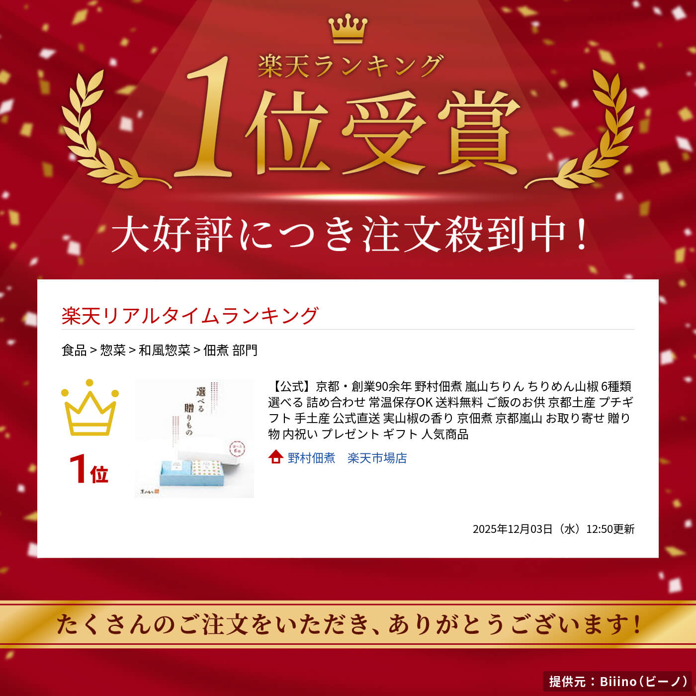 【公式】京都・創業90余年 野村佃煮 嵐山ちりん ちりめん山椒 6種類 選べる 詰め合わせ 常温保存OK 送料無料 ご飯のお供 京都土産 プチギフト 手土産 公式直送 実山椒の香り 京佃煮 京都嵐山 お取り寄せ 贈り物 内祝い プレゼント ギフト 人気商品