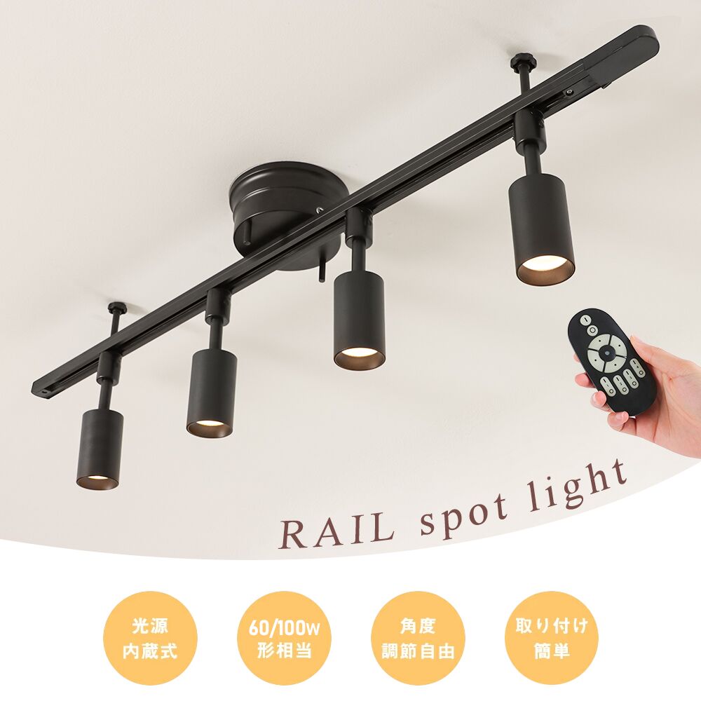 「抽選で最大P100%!BFだげ7%オフ」シーリングライト 4灯 60W形相当 100W形相当 ダクトレール スポットライト LED一体型 LED電球内蔵 照明 電球色 昼白色 850lm ライティングレール COB 調光調色 照明器具 間接照明 ダイニング リビング キッチン 簡易取付 1M/1.5M